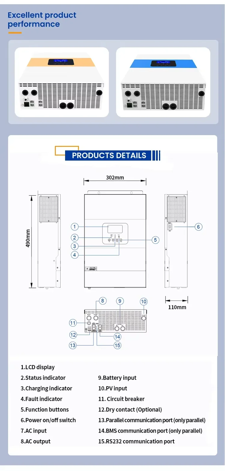 5. Laaja aurinkopaneelien tulojännitealue (120~450VDC)
