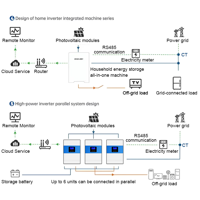 1. Jos akussa on BMS ja BMS liitetään invertteriin, invertteri ja akku keskustelevat keskenään ja säätävät automaattisesti latausjännitteen katkaisupistettä ja muita parametreja. Parametreja säädetään jatkuvasti akun kunnon mukaan, mikä parantaa akun käyttöikää ja turvallisuutta.