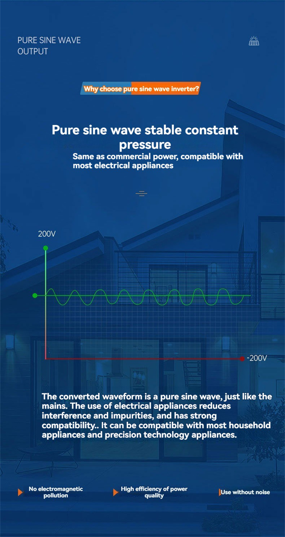 – Puhdas siniaaltoaurinkoinvertteri vakaille jännitteille ja herkille kuormille