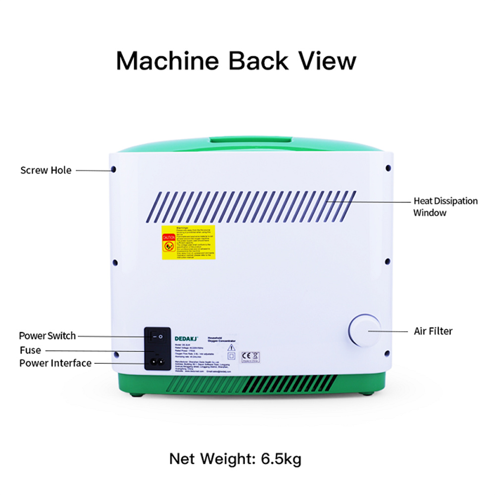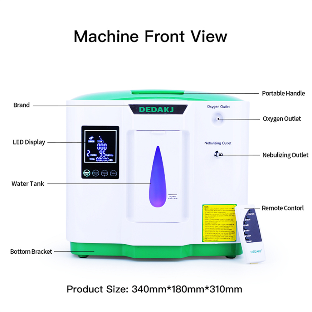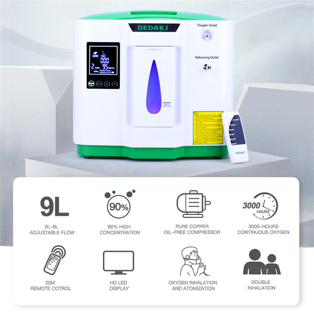 Dedakj DE-2A kannettava happikonsentraattori säädettävä 2–9 l/min hiljainen ilman nebulisaattoritoimintoa