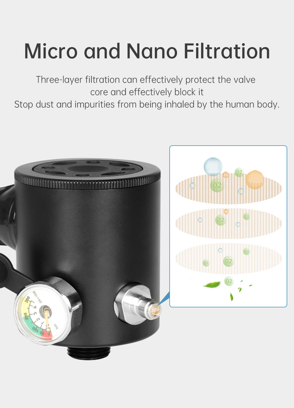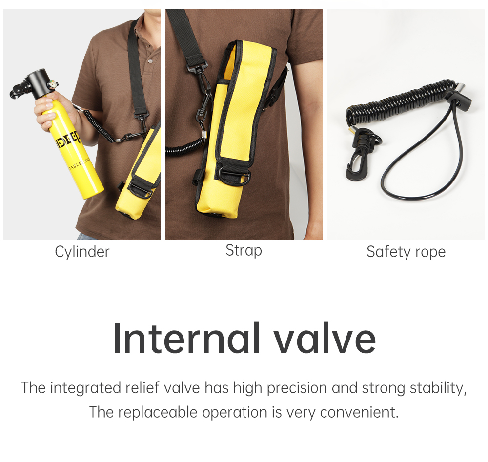 0.5L DIDEEP -sukelluspullo on kevyt ja helppo ottaa mukaan lyhyille sukelluksille, varmistukselle tai pintasukellukseen. Kestävä 6061T6-alumiinirunko, selkeä painemittari ja miellyttävä silikonisuukappale helpottavat käyttöä. Pullon voi täyttää käsipumpulla, täyttöadapterilla tai sähköisellä täyttölaitteella.