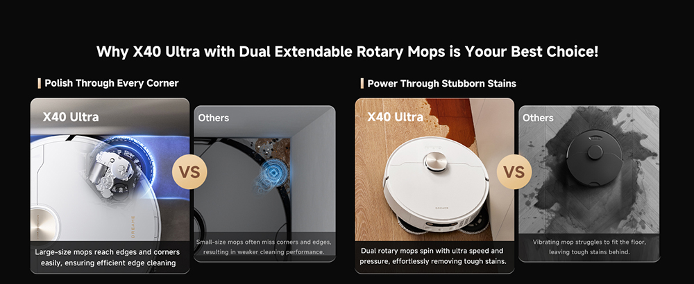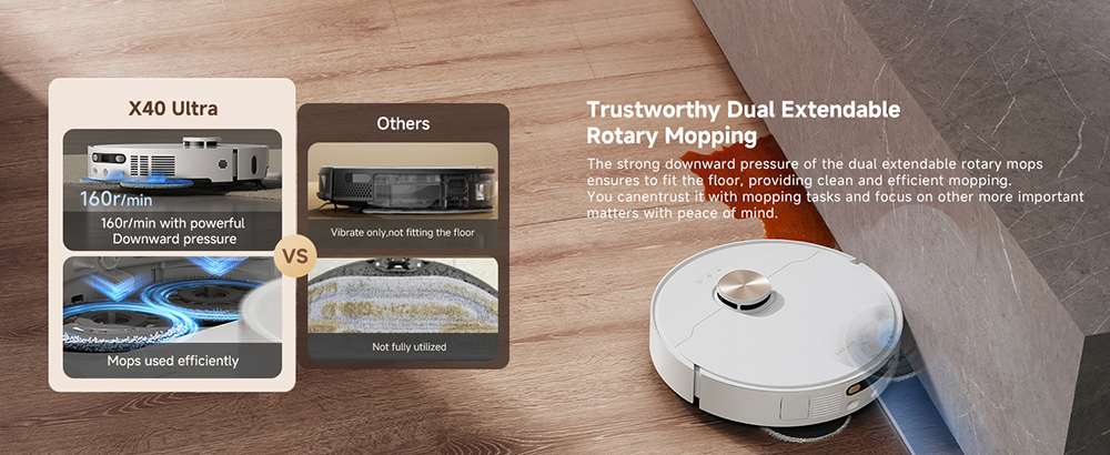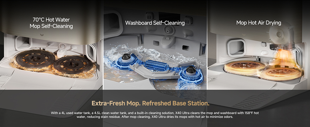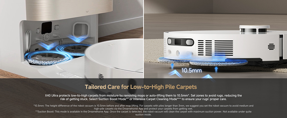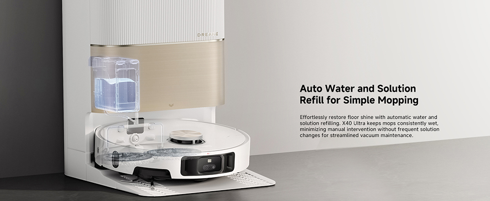 Dreame X40 Ultra Complete on siivousrobotti, joka yhdistää tehokkaan imuroinnin ja tarkan moppauksen helppokäyttöiseen sovellushallintaan sekä hygieeniseen telakkaan.