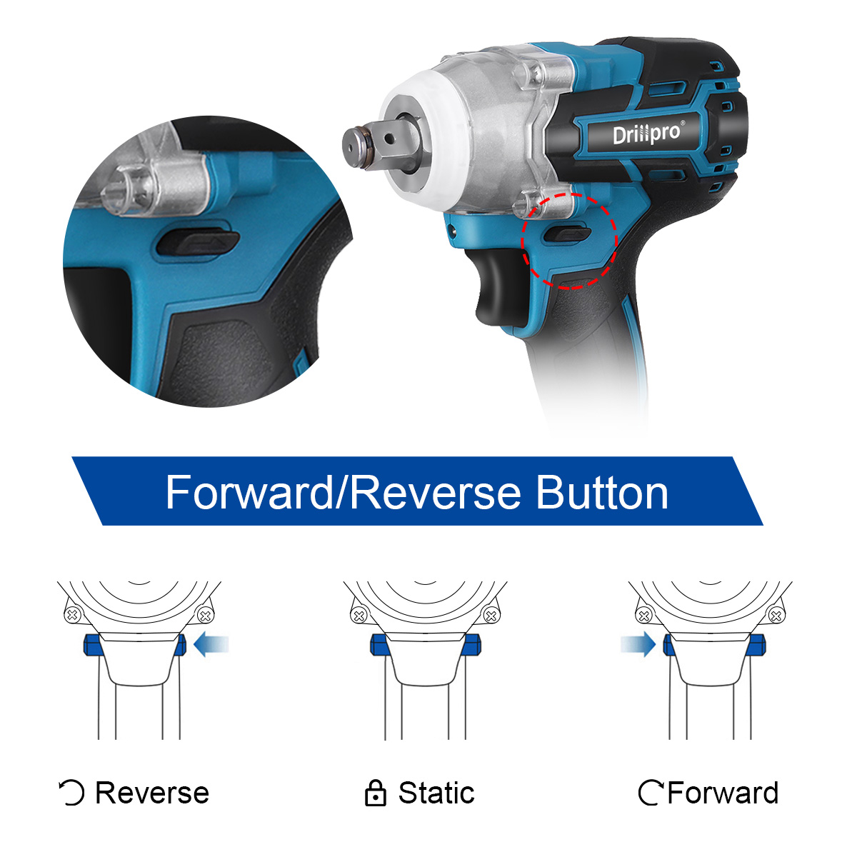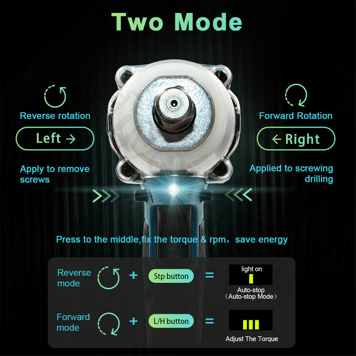Peruutuspyörimisen automaattinen pysäytystila katkaisee iskun, kun pultti tai mutteri on riittävän löysällä (toiminto toimii vain vastapäivään pyöriessä ja pysäyttää pyörimisen 0.1–0.2 sekunnin kuluttua, kun kiinnike on löystynyt tarpeeksi)