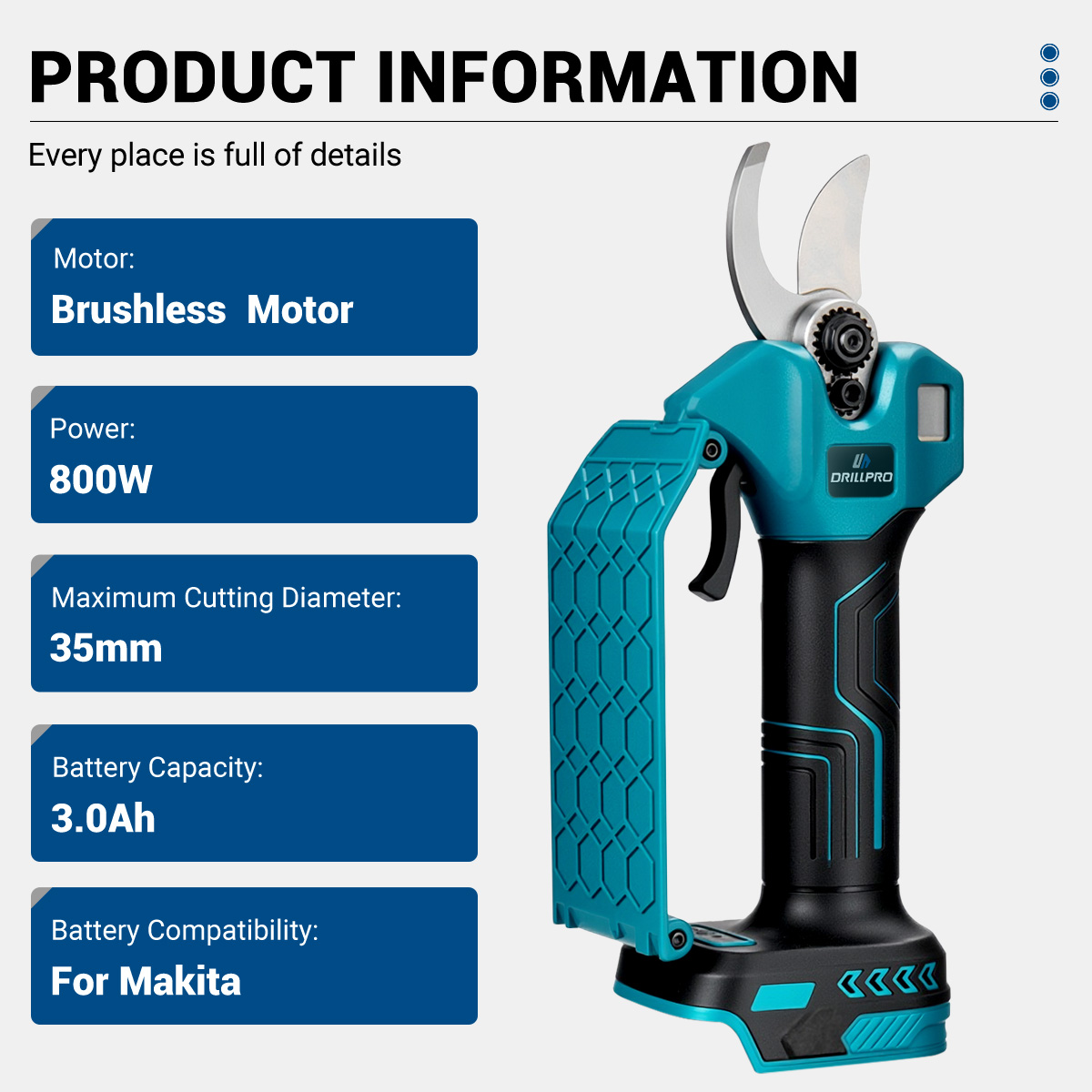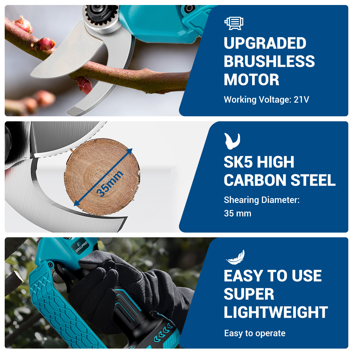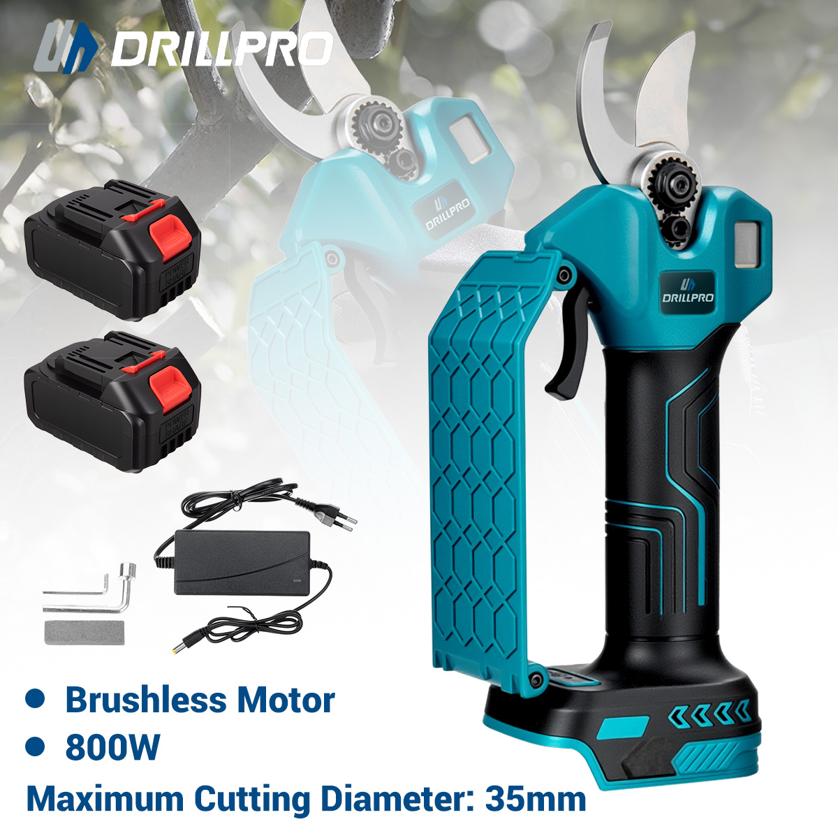 Drillpro 21V 800W sähköiset oksasakset 35mm leikkaushalkaisija Makita-yhteensopiva EU-pistoke