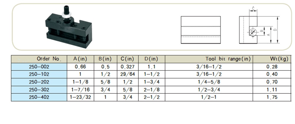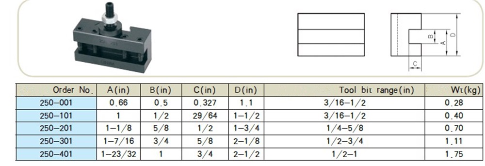 Drillpro 250-000 mini-kiilamallinen GIB-tyyppinen pikavaihtosorvin työkalupidin ja työkalupidikkeet puuntyöstösorvin työkaluille.