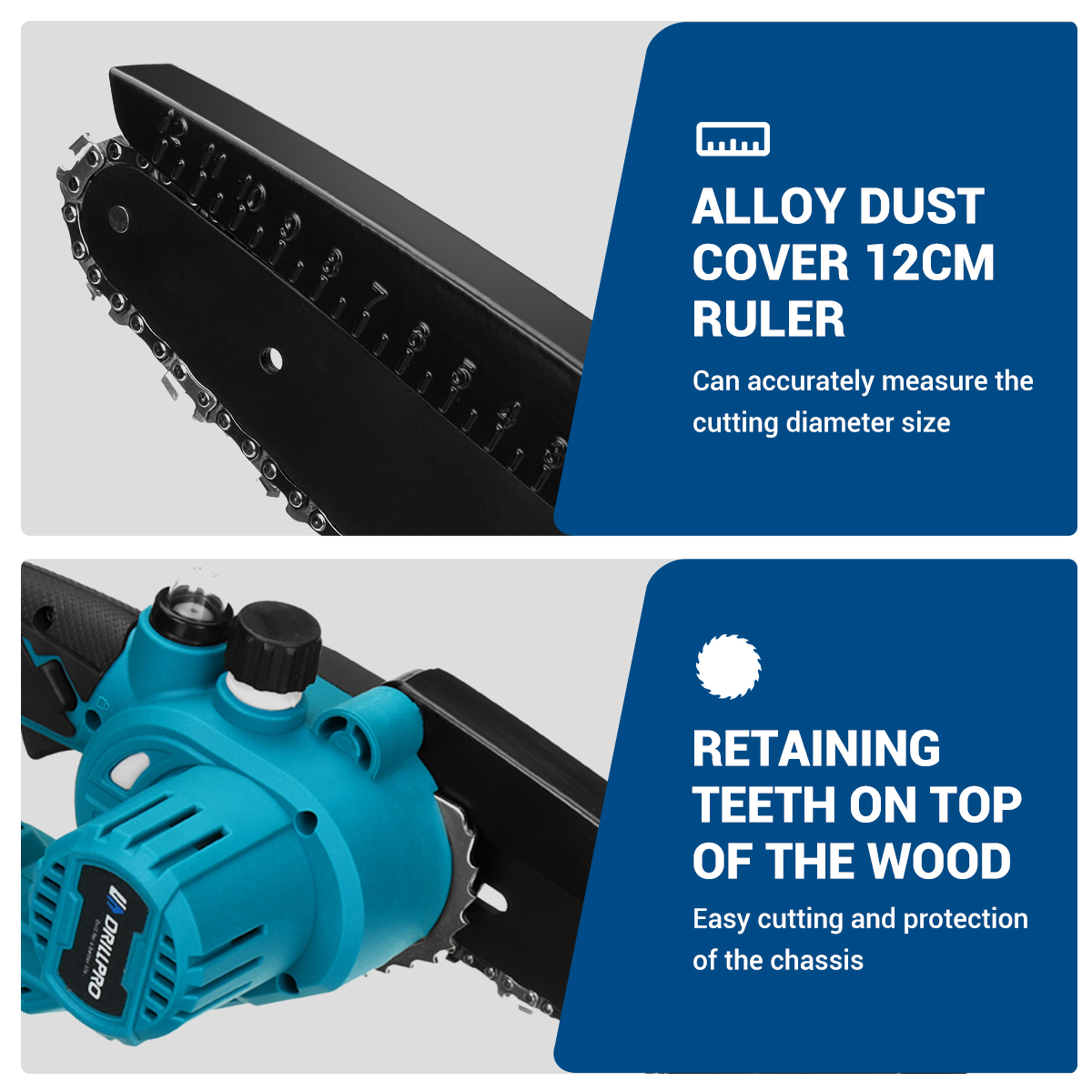 Kompakti Drillpro-harjaton akkuketjusaha on suunniteltu kevyisiin ja keskisuuriin katkaisu- ja karsintatöihin pihalla, puutarhassa ja mökillä. Harjaton moottori, nopea ketjunopeus ja 10-kennoinen litiumakku tarjoavat tehokkaan ja tasaisen suorituskyvyn ilman johtoja.