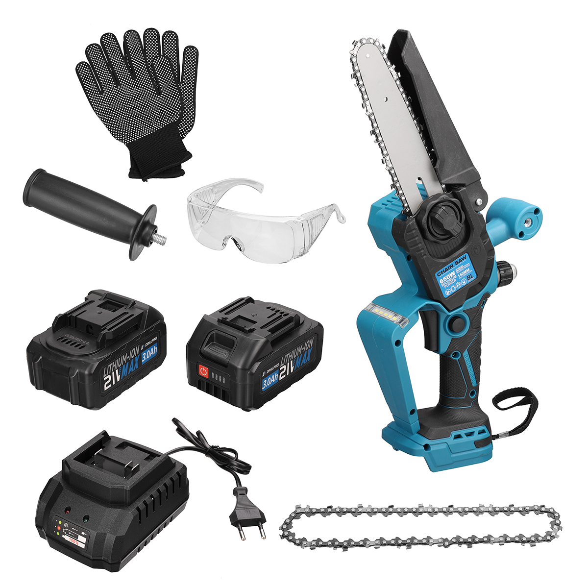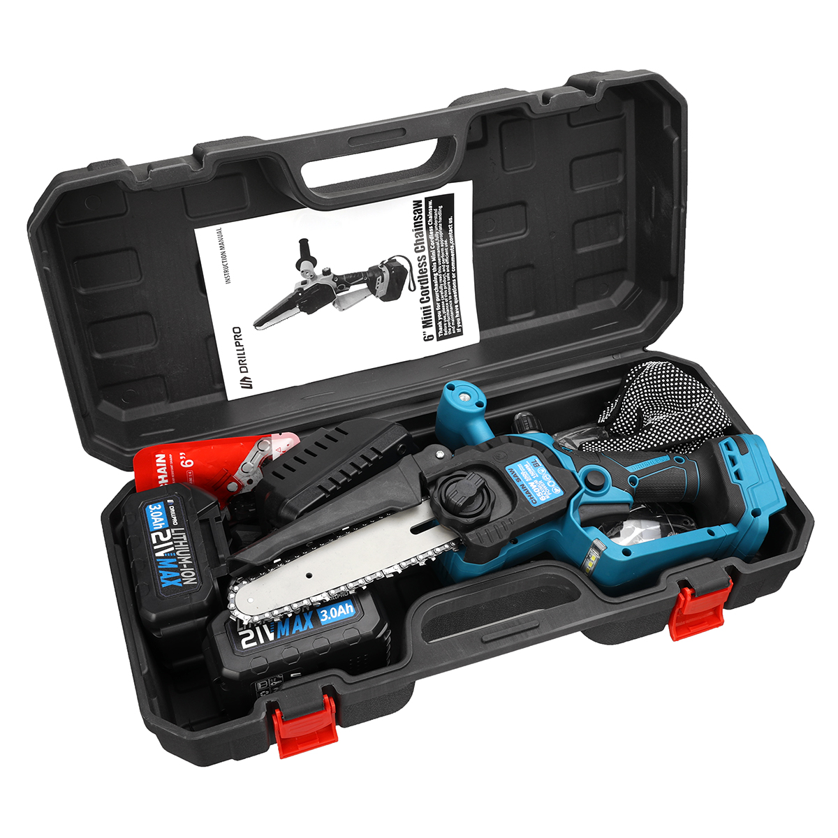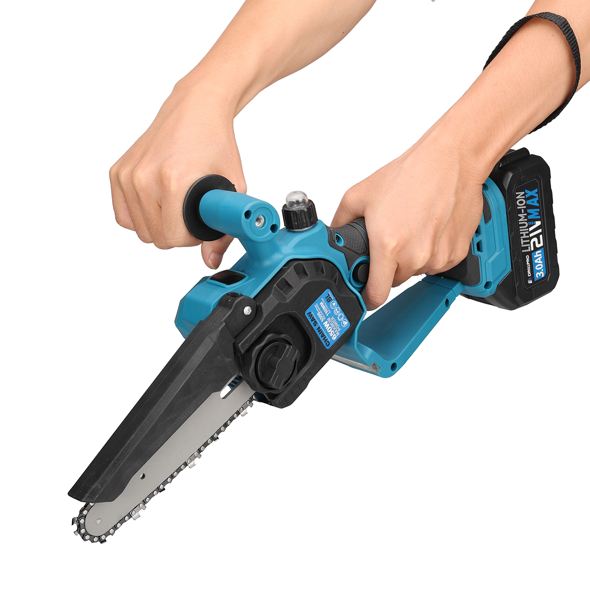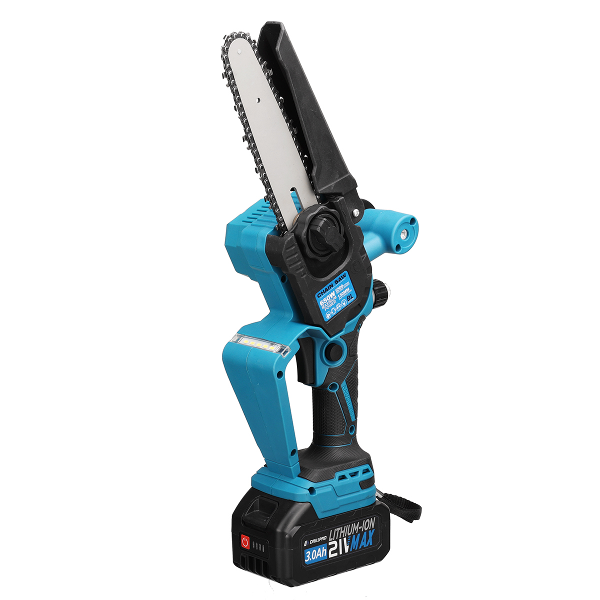Drillpro akkuinen 6-tuumainen harjaton sähkömoottorisaha 21-volttinen 3,0Ah kevyt kannettava led-valaistuksella