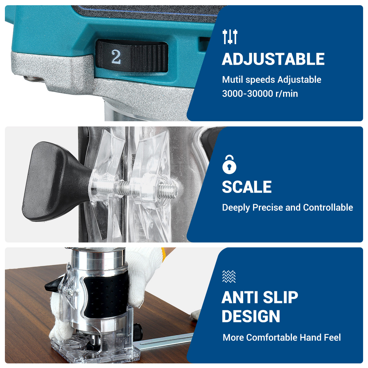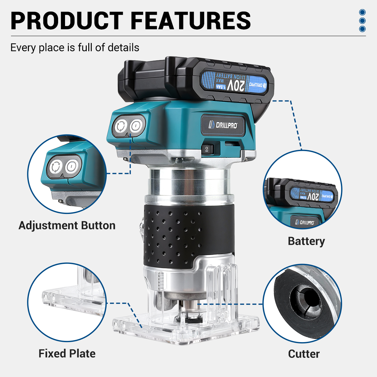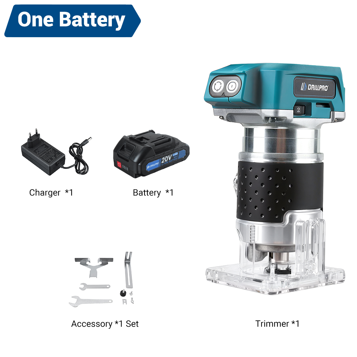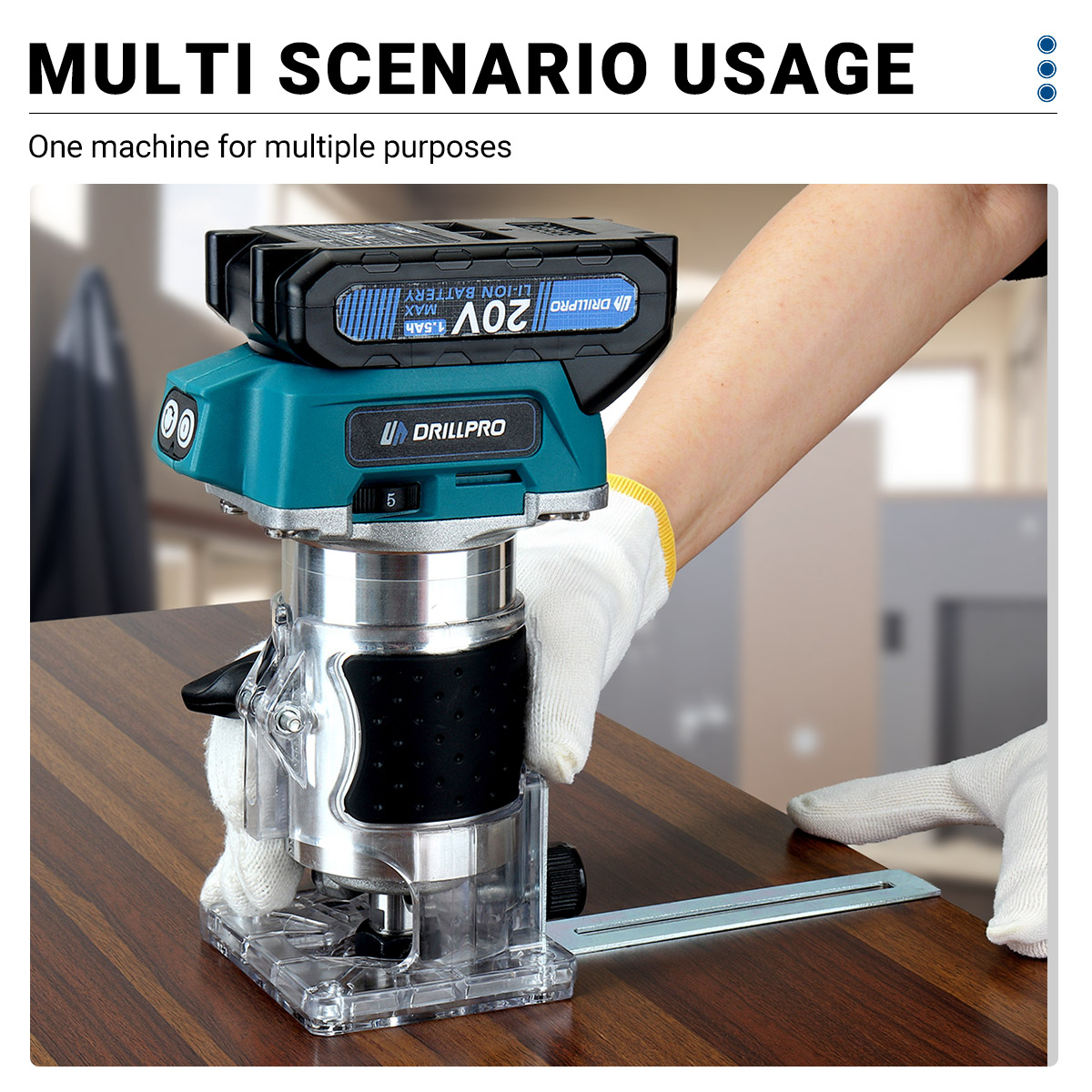 Drillpro akkukäyttöinen harjaton 350W puun trimmeri pienikokoinen reititin urantekoon kaiverrukseen