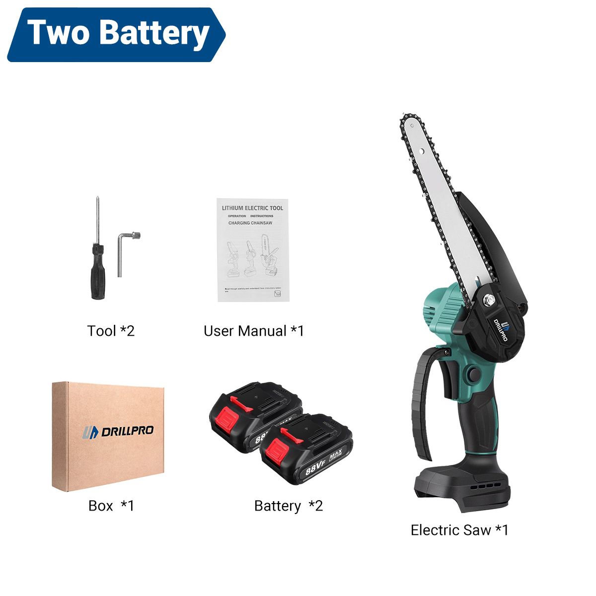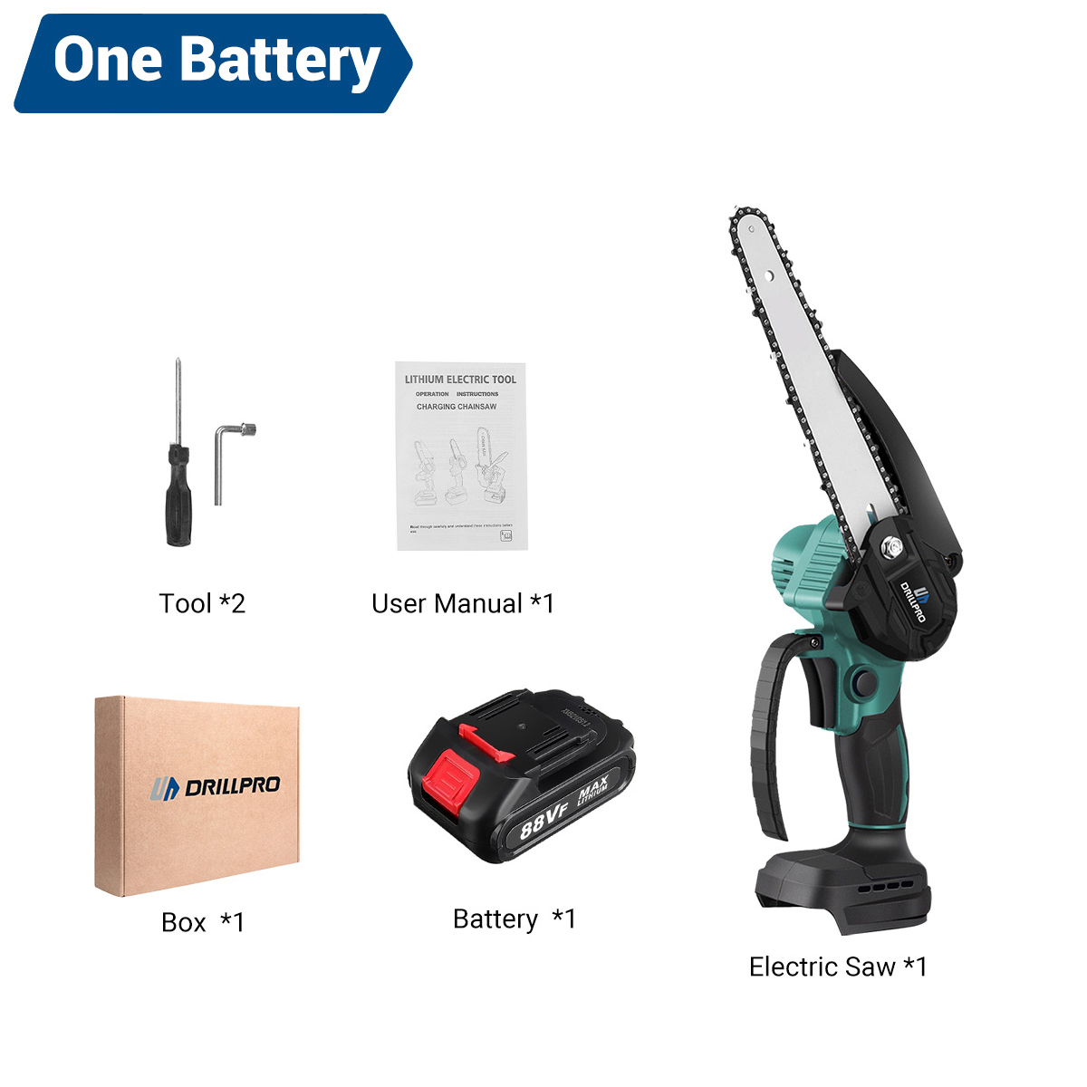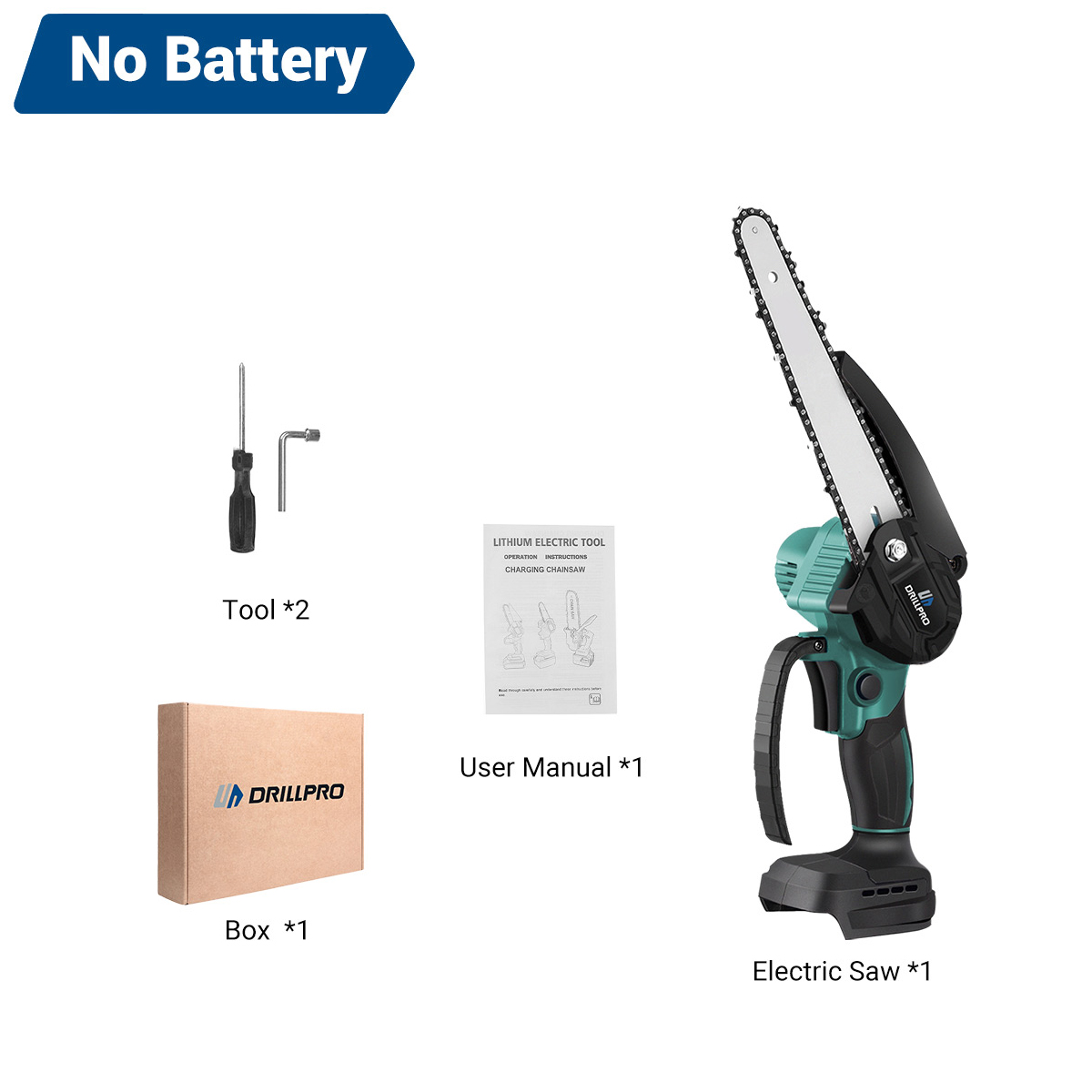 Drillpro Electric Cordless Chain Saw on kompakti ja tehokas 8-tuumainen akkusaha, joka sopii puun, oksien ja muiden puumateriaalien nopeaan katkaisuun. Harjaton moottori tuottaa 3000W huipputehon, ja kevyt, ergonominen runko on miellyttävä käyttää pidempäänkin. Runkoversio on yhteensopiva 18V akkujen kanssa.