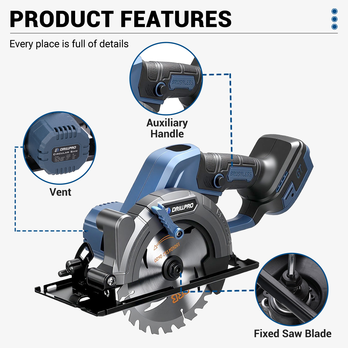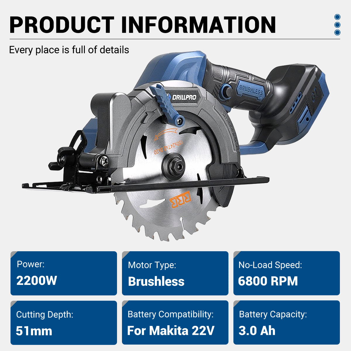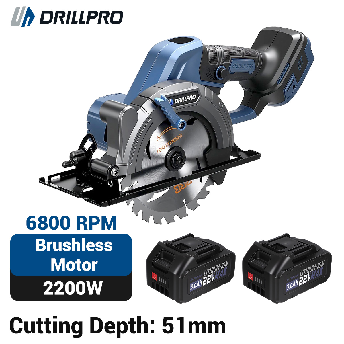 Drillpro harjaton langaton pyörösaha 2200 W 6800 kierrosta minuutissa 51 mm leikkaussyvyys 22 V akulle