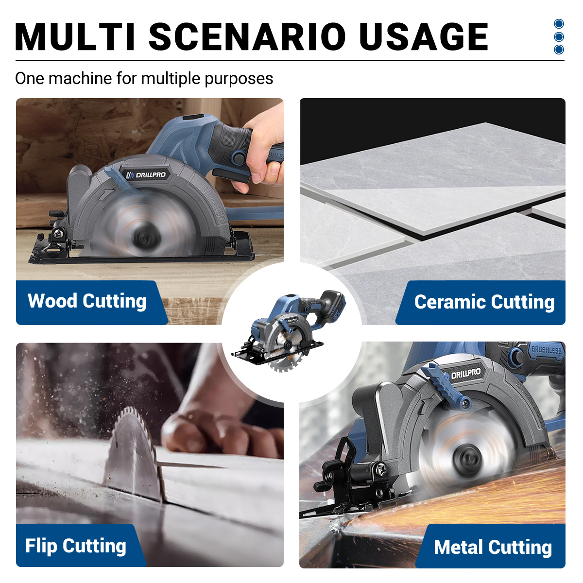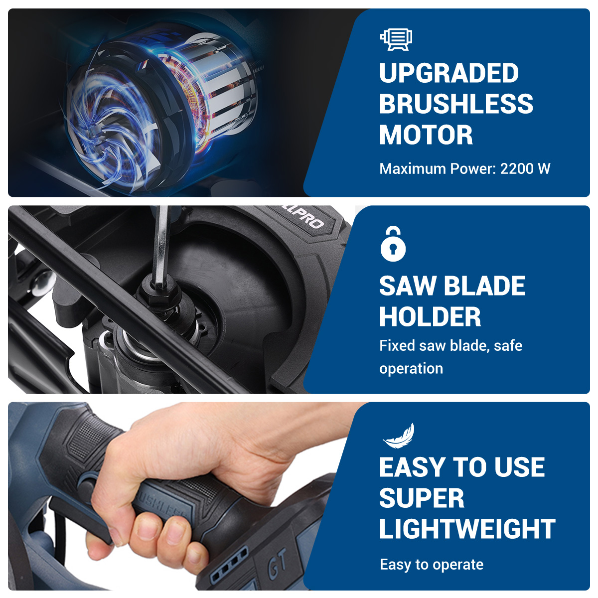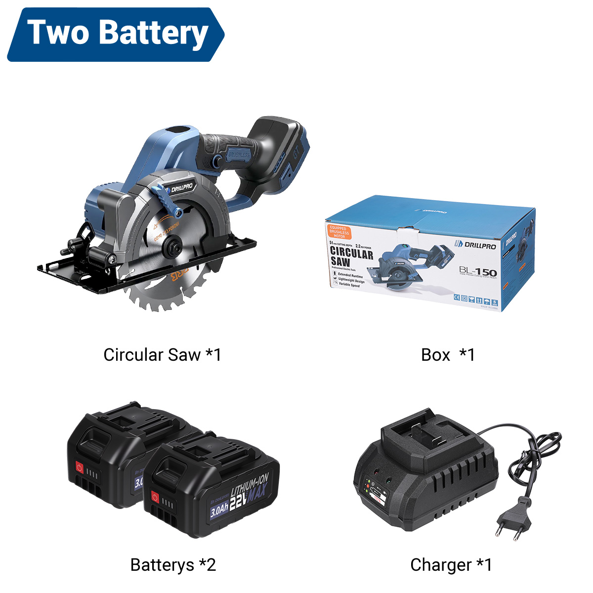 Drillpro harjaton langaton pyörösaha 2200 W 6800 kierrosta minuutissa 51 mm leikkaussyvyys 22 V akulle