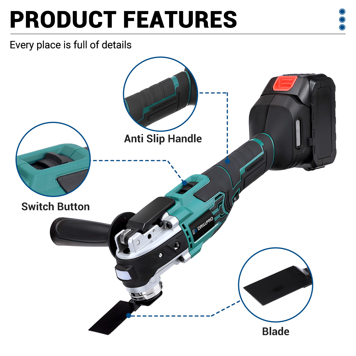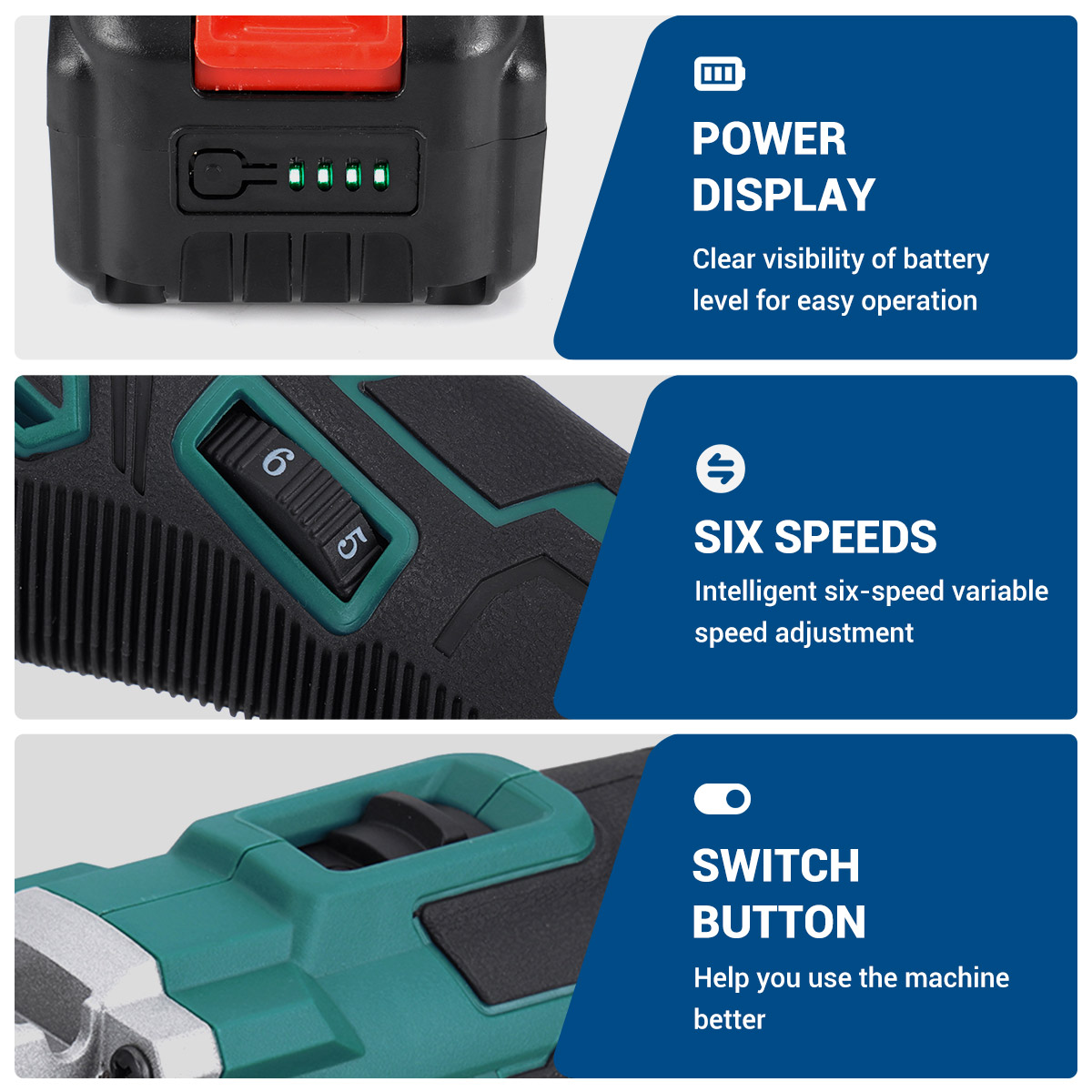 Drillpro harjaton sähköhiomakone kuusiportainen digitaalinen näyttö pikaistukka akku terät kotelo