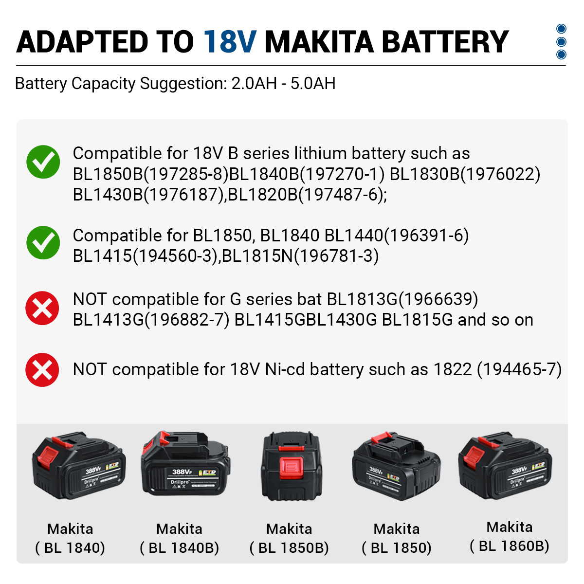 13000mah akku tarjoaa pitkäkestoista tehoa, ja pakkaukseen sisältyy 2 akkua, joten voit työskennellä pidempään ilman jatkuvia lataustarpeita.