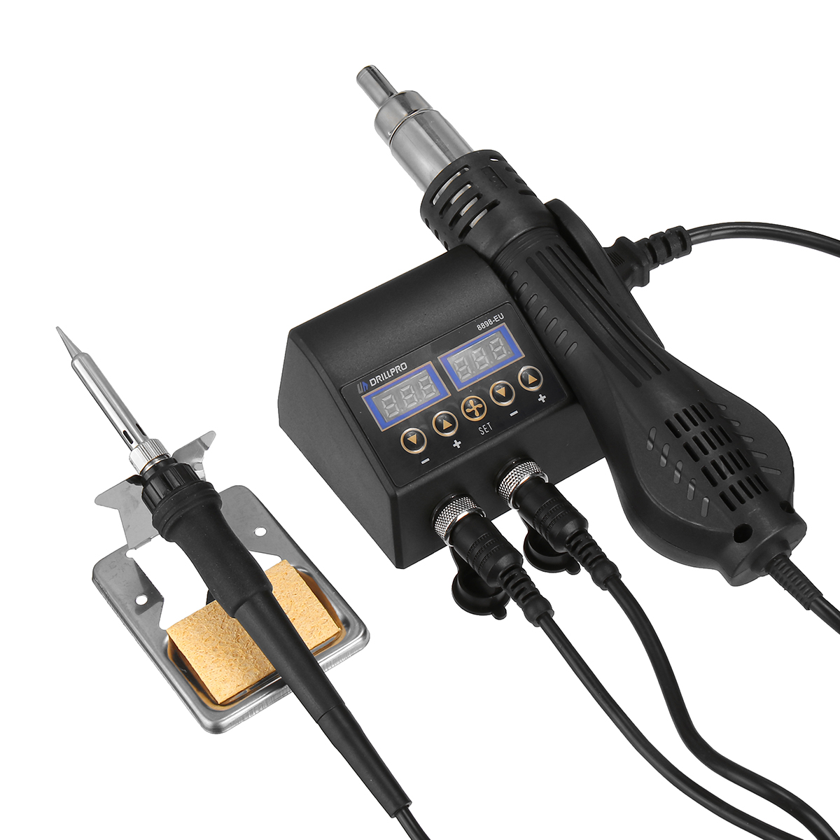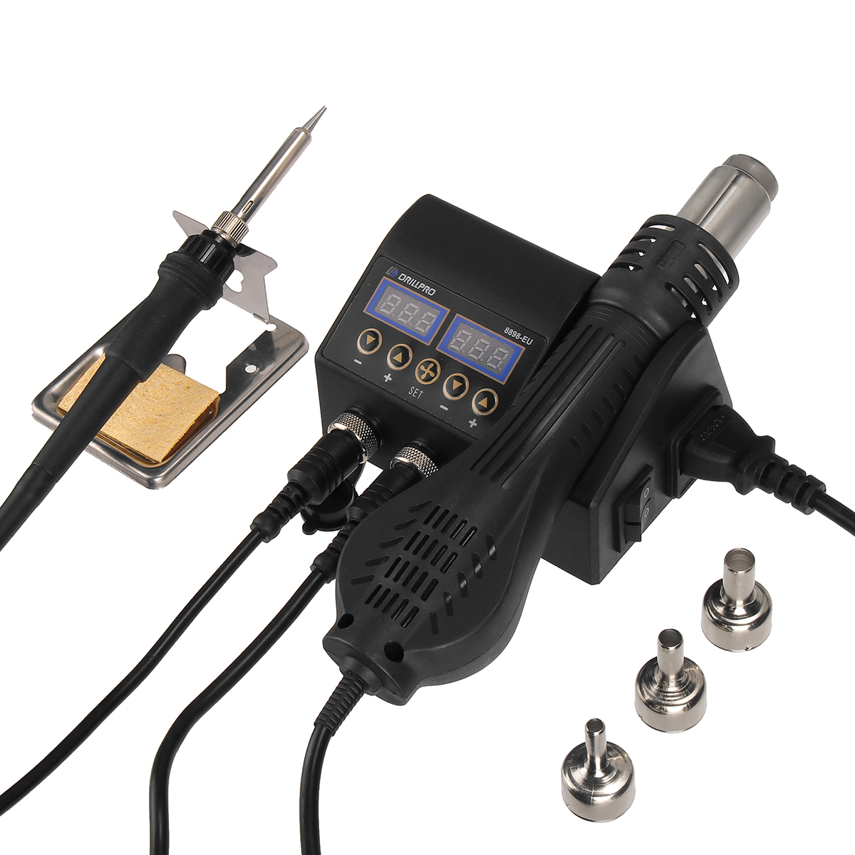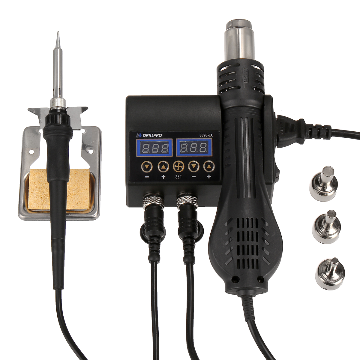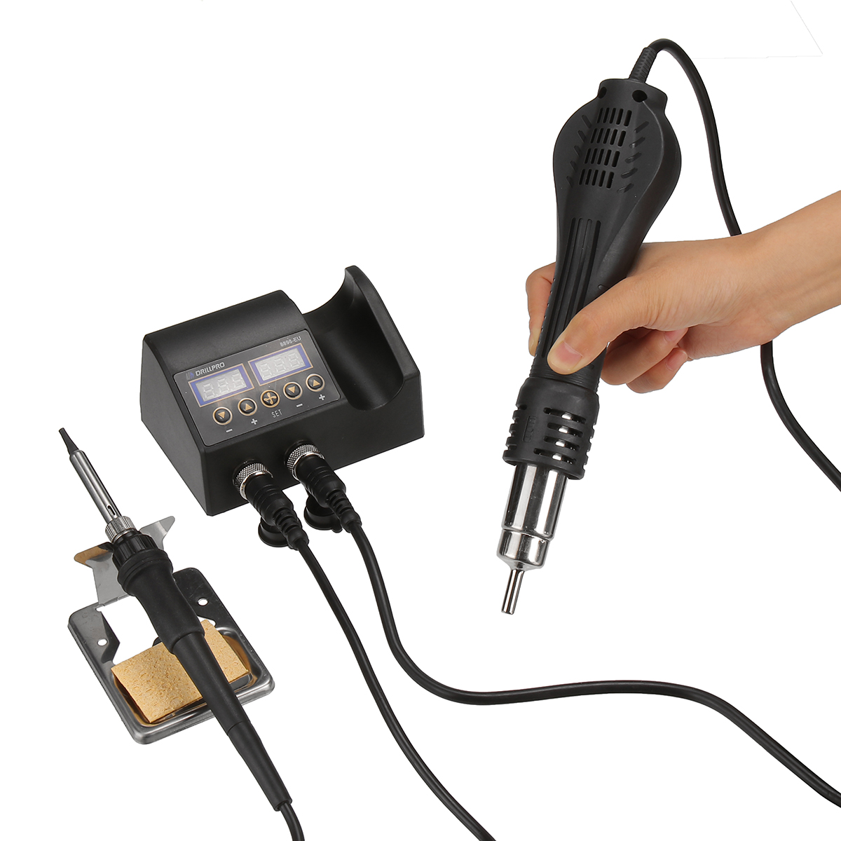 Drillpro kaksitoiminen juotosasema 750W 220V kuumailmalla ja juotin kaksoisnäytöllä kompakti automaattijäähdytys