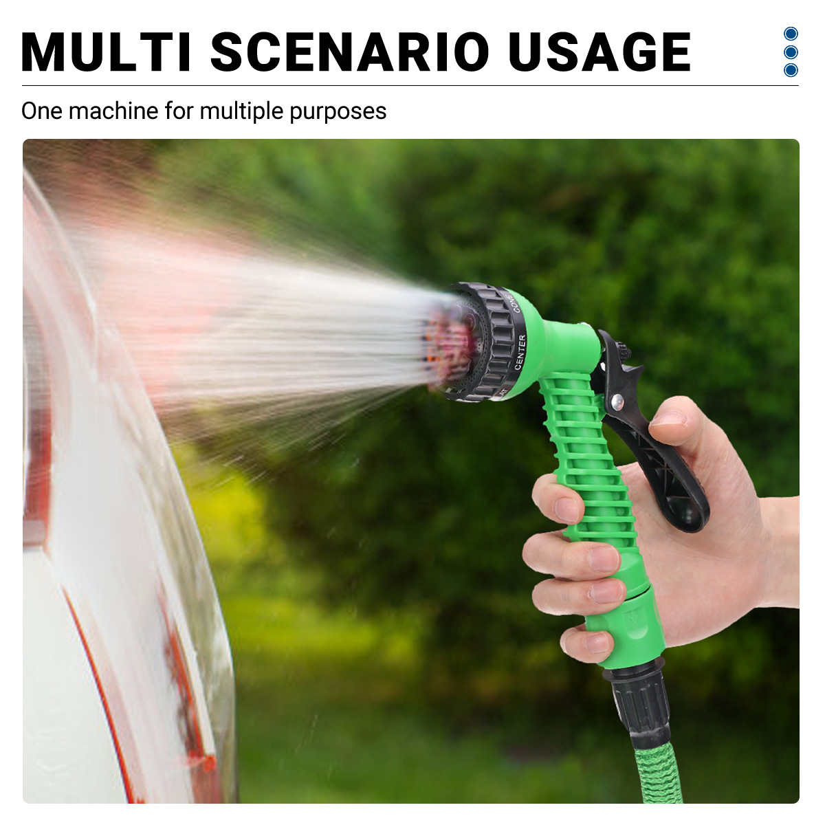 Mukana tuleva PP-suihkupistooli tekee kastelusta helppoa. Säädettävät asetukset sopivat erilaisiin käyttötarpeisiin, kuten kasvien kasteluun, auton pesuun tai pihan huuhteluun.