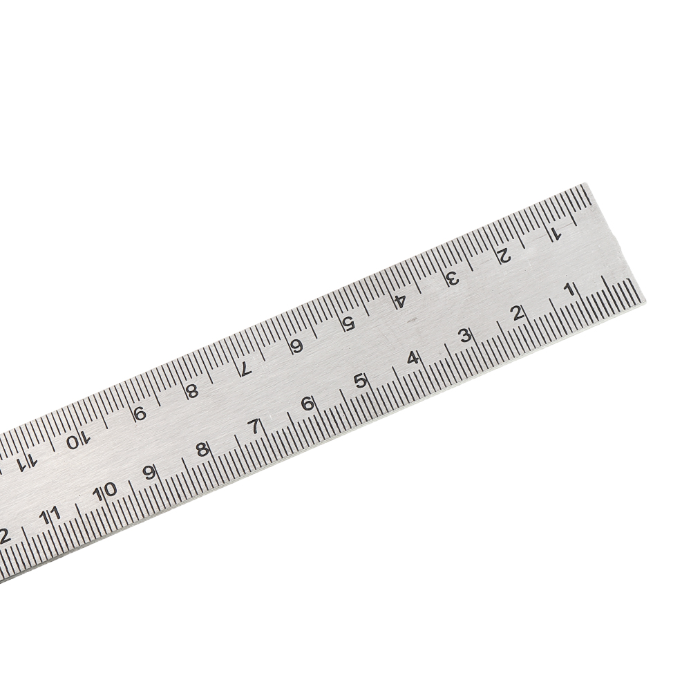 - 2mm paksu ruostumattomasta teräksestä valmistettu viivain, kaksipuolinen asteikko selkeää lukemista varten.