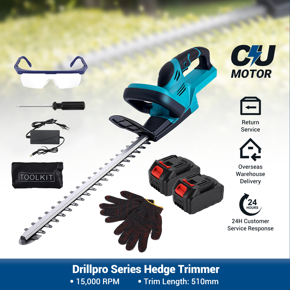 Drillpro sähköinen pensasleikkuri akkukäyttöinen 18V 2000W 15000 kierr./min 510mm SK5-terä säädettävä leikkuupää