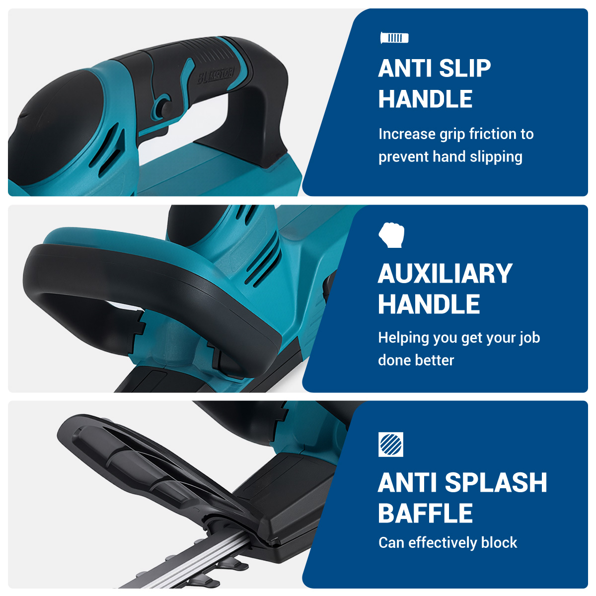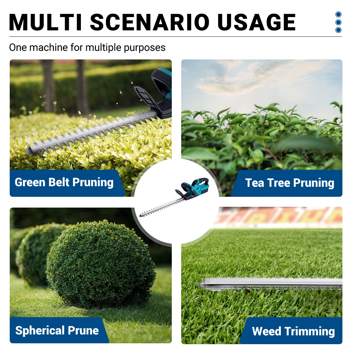 1. Monipuoliset leikkuuvaihtoehdot: Vaihdettavat terät mahdollistavat sekä pensasleikkuun että nurmikon siistimisen, joten eri tehtävien välillä voi siirtyä ilman työkaluja.