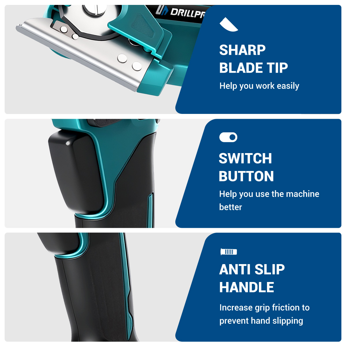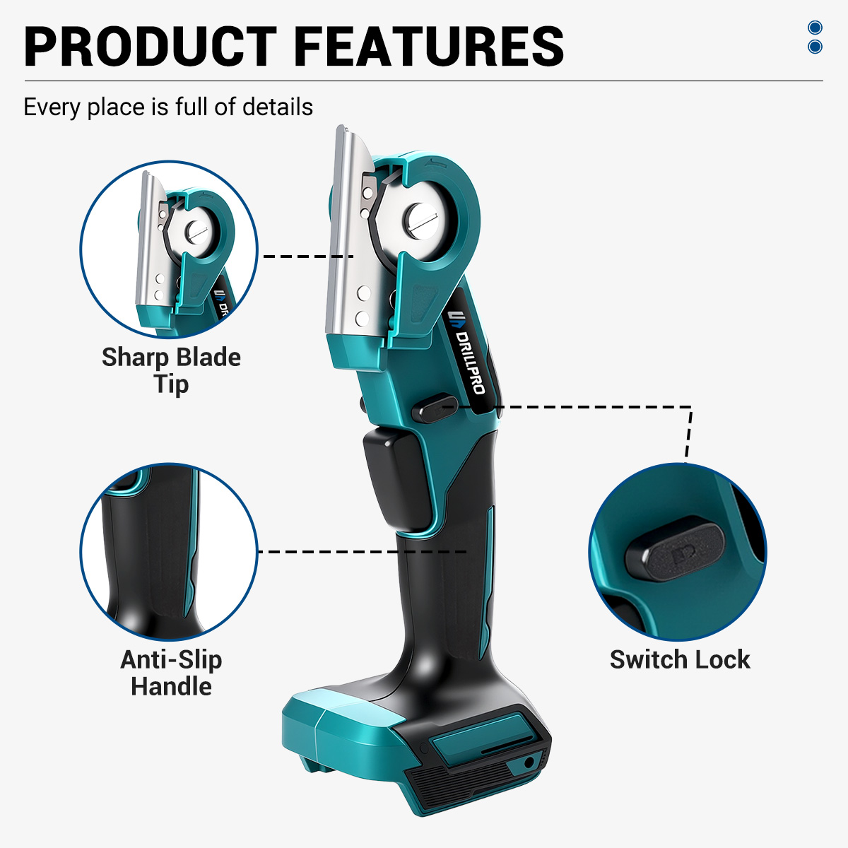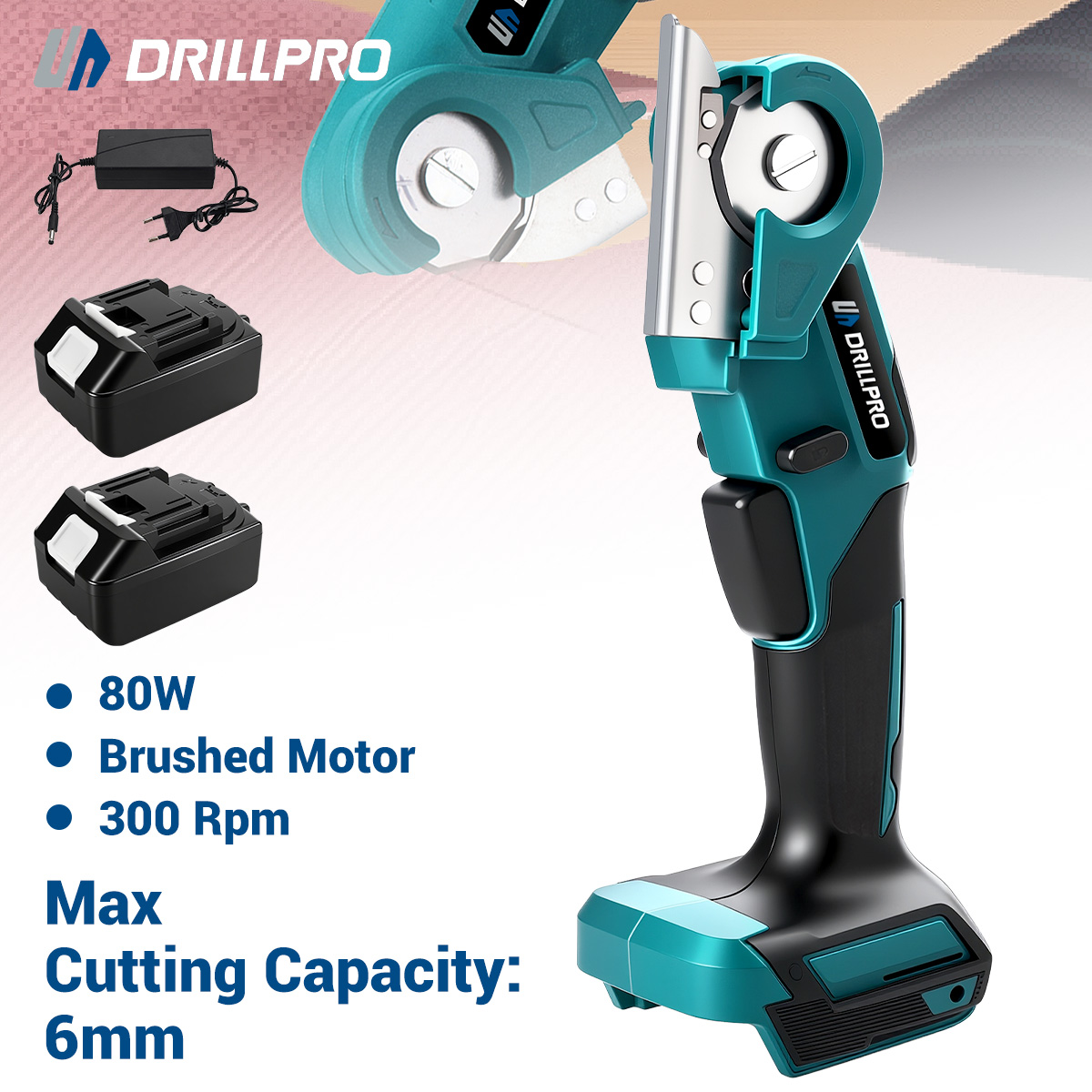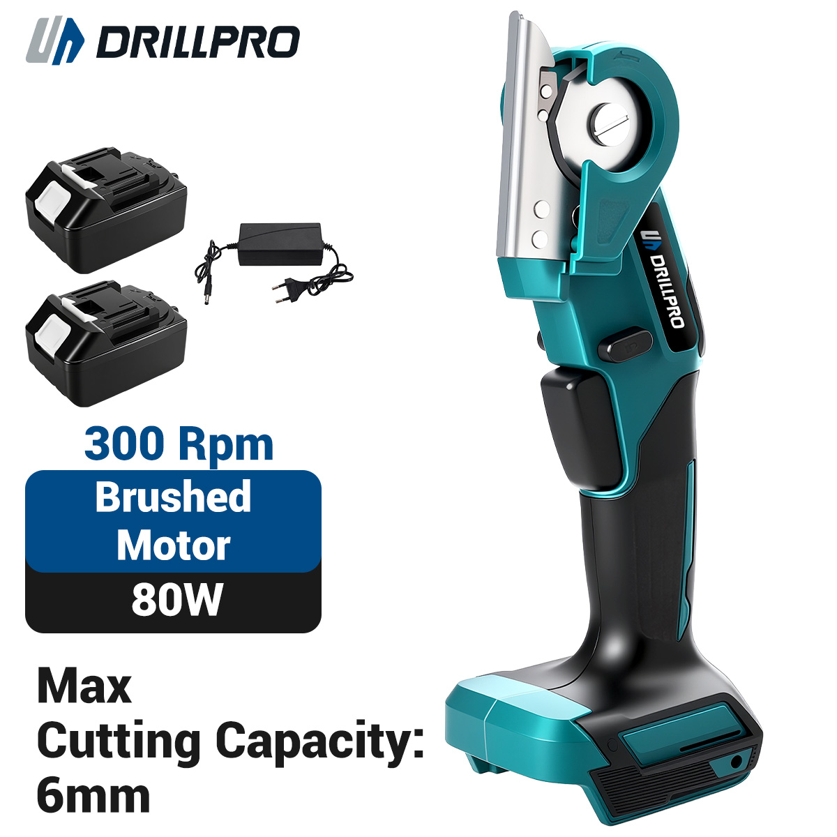 Drillpro sähkösakset 80-wattinen harjamoottori 6 mm leikkaus 2,5 Ah akku