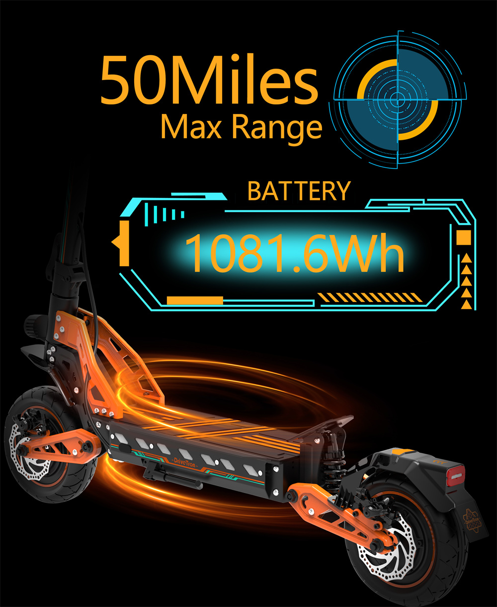 Drivetron DT10 sähköpotkulauta 52V 20.8Ah akku kaksoismoottorit 1000W*2 80 km toimintasäde taitettava