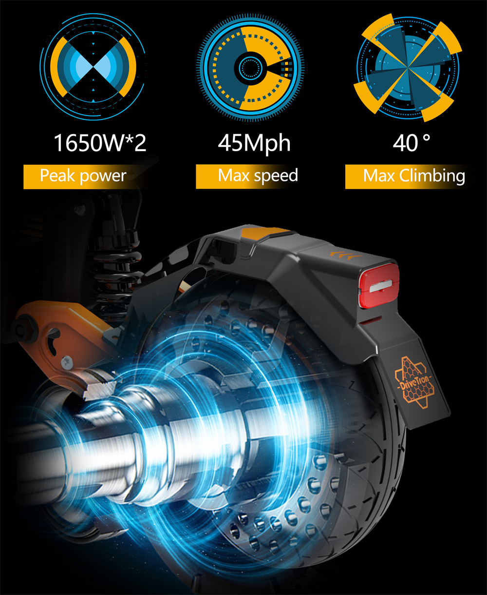- Kaksi 1000W-moottoria (1650W*2 huipputeho) vauhdikkaaseen ajoon