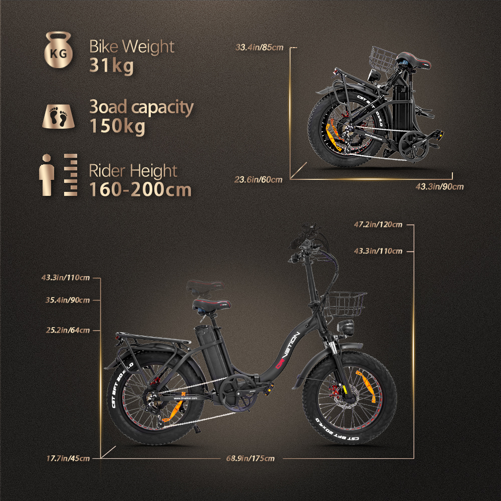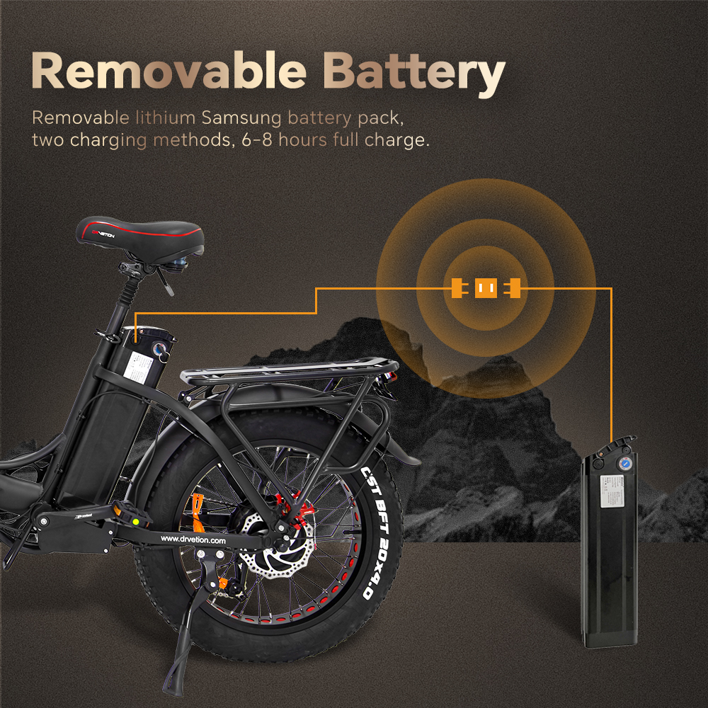 DRVETION CT20 on 20-tuumainen fatbike-tyyppinen, taitettava sähköpyörä, jossa on 750W moottori, 48V 10Ah Samsung21700 -litiumakku ja etu- sekä takajousitus. Se soveltuu päivittäiseen ajoon, työmatkoille ja vaihteleviin maastoihin.
