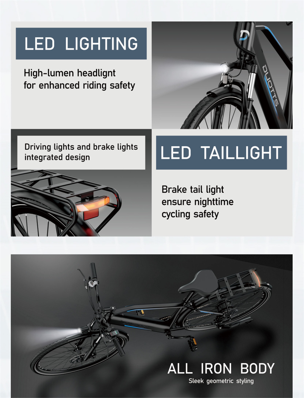 - 36V 250W -sähkömoottori, enimmäisnopeus 25KM/H kaupunki- ja työmatka-ajoon