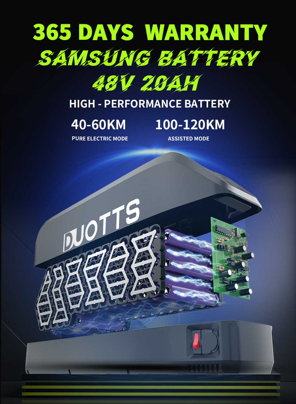 - 48V 20Ah Samsung 21700 -akkukennot, toimintasäde jopa 80–100KM avustavassa poljinmoodissa
