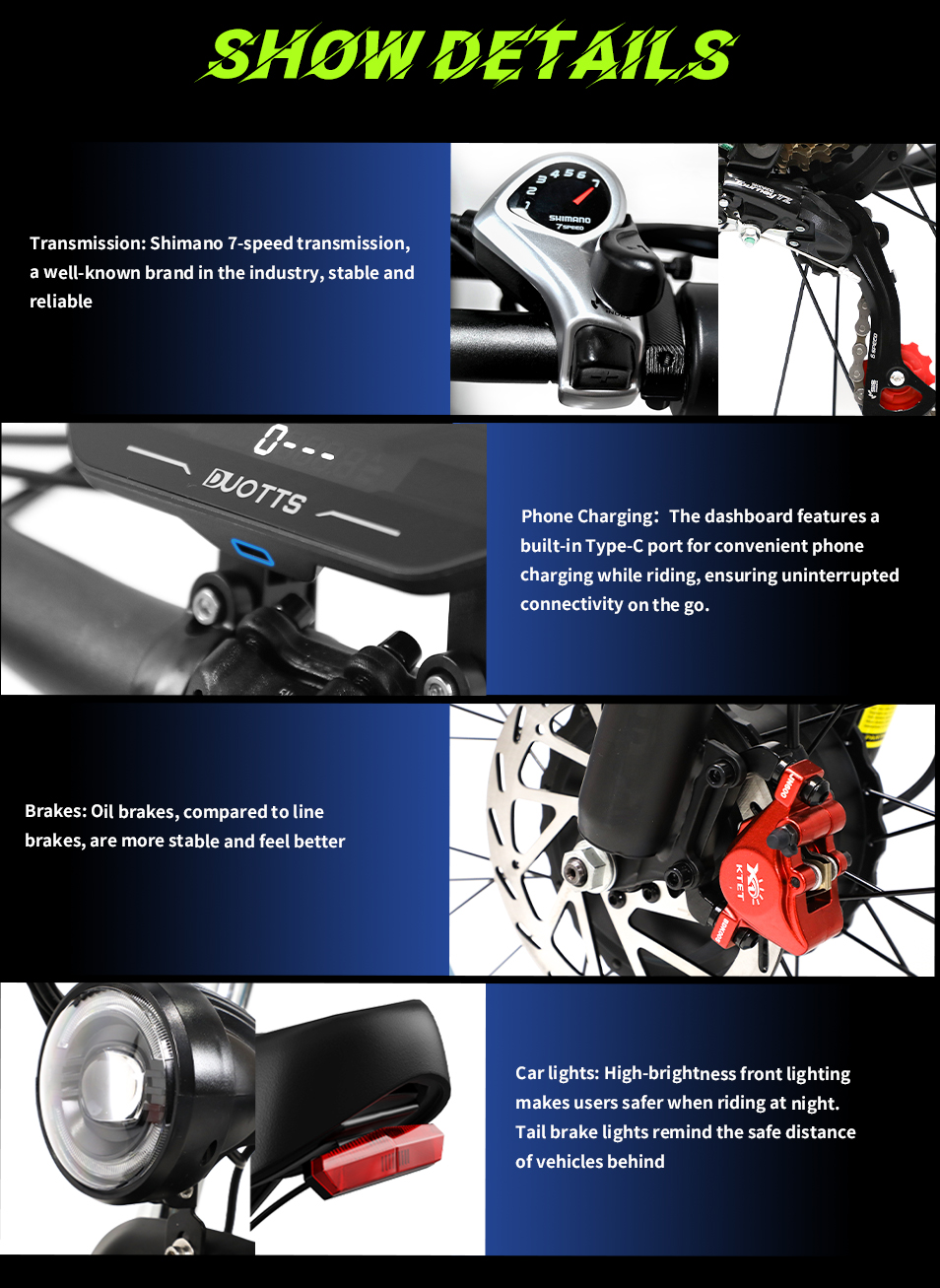 | Vaihteisto | SHIMANO 7-vaihteinen vaihteisto | Moottorin teho | 48V 750W*2 kaksoismoottorit |