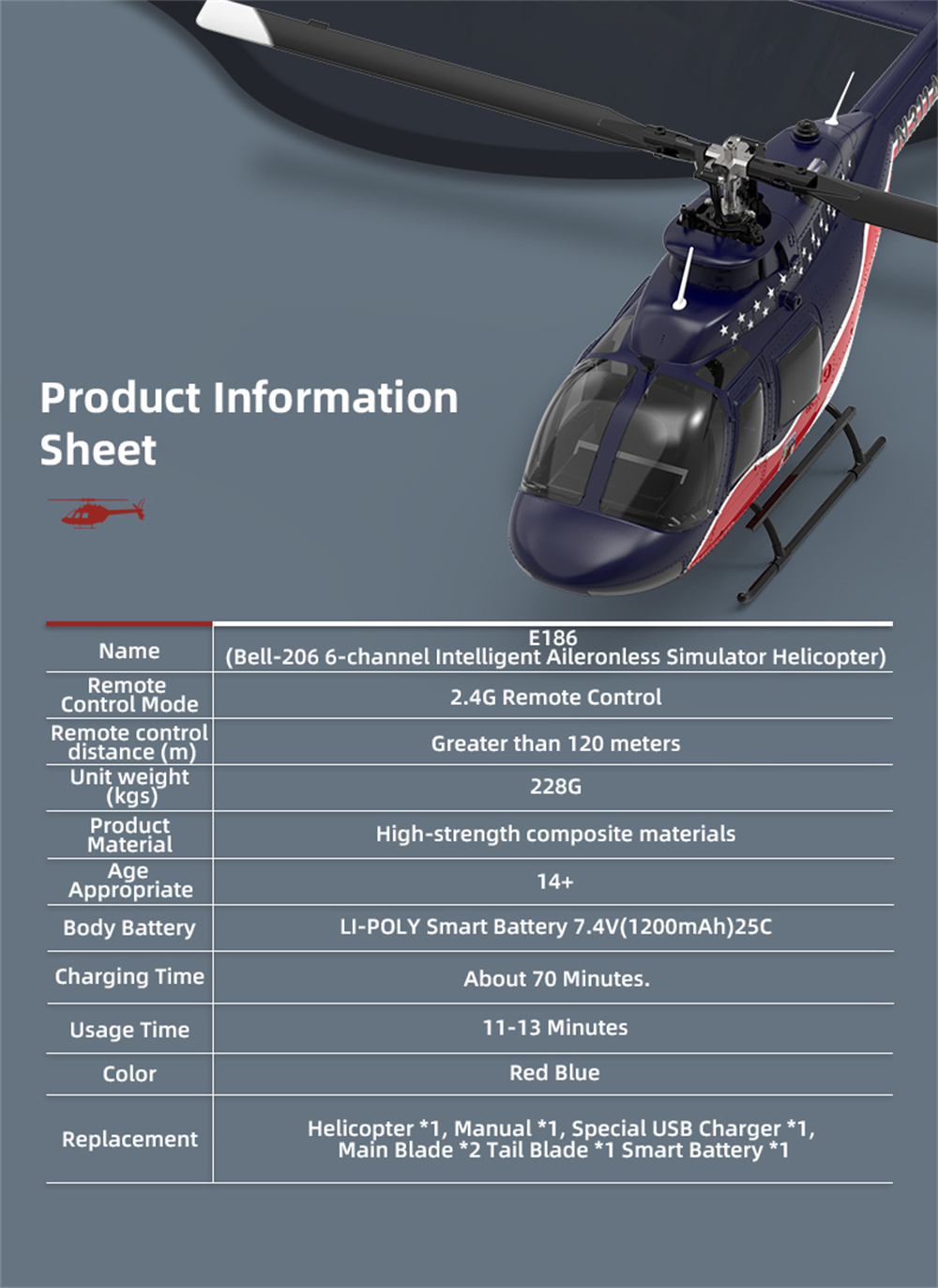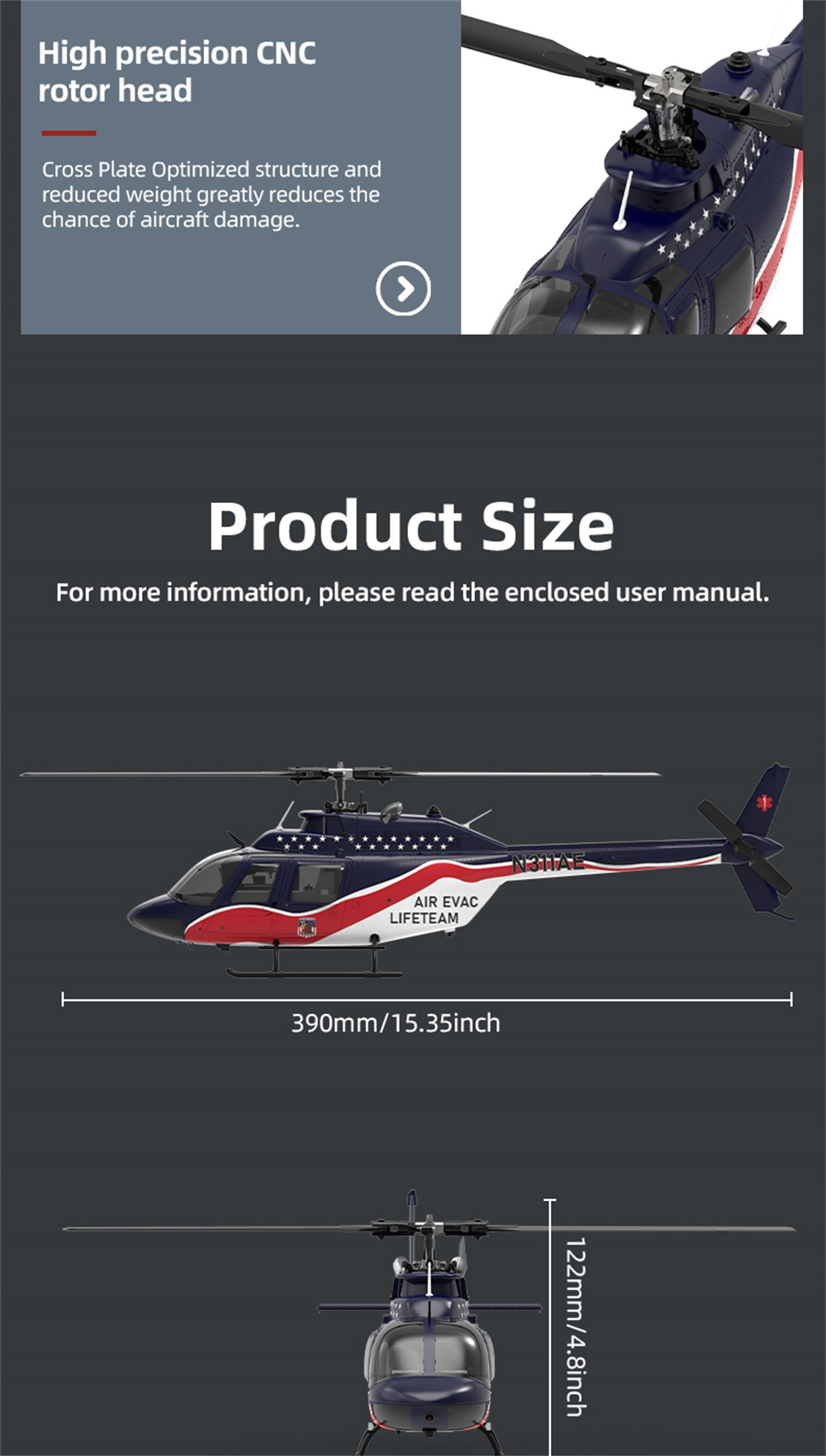 1> Mittakaava on 27:1, esikuvana Bell Helicopter Companyn Bell-206-helikopteri Yhdysvalloista. Ulkoasu on erittäin realistinen ja yksityiskohtainen, ja kokonaisuutta täydentävät tyylikkäät valot.