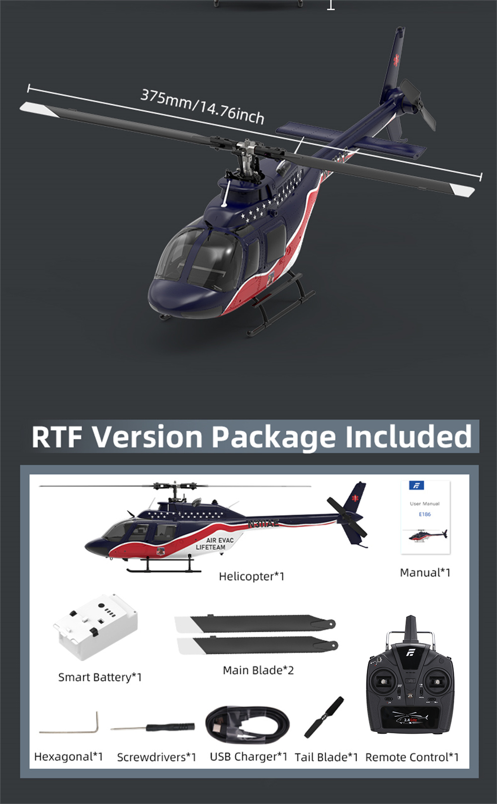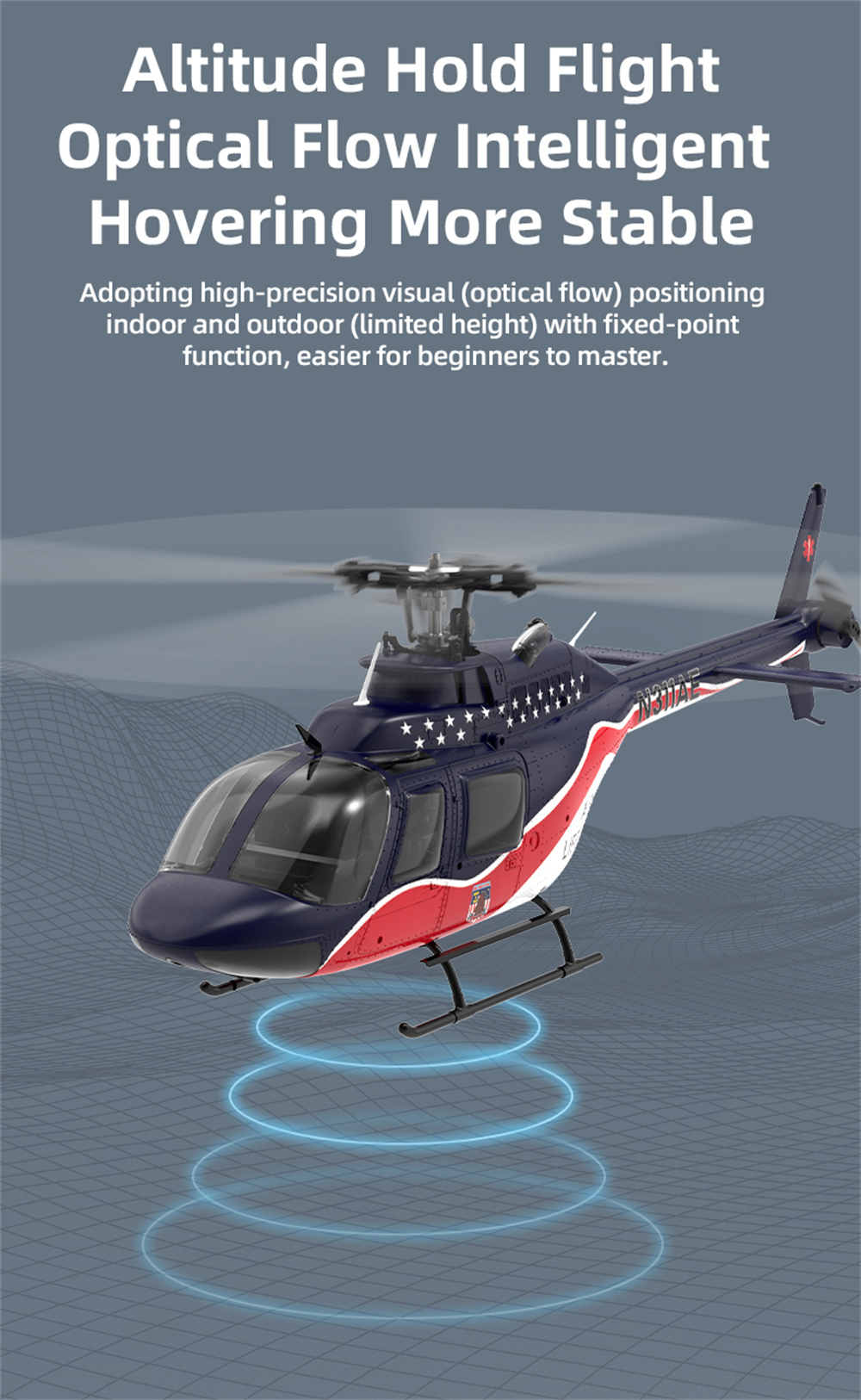 Eachine E186 skaalahelikopteri 1:27 Bell-206-tyyppi 2,4 GHz 6-kanavainen korkeudenhallinnalla optisella paikannuksella