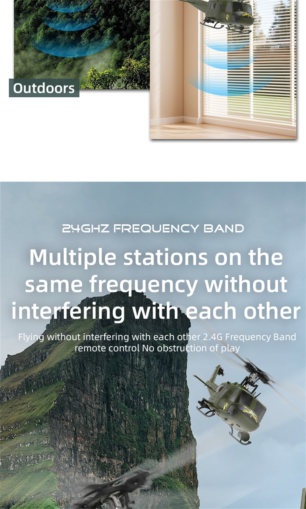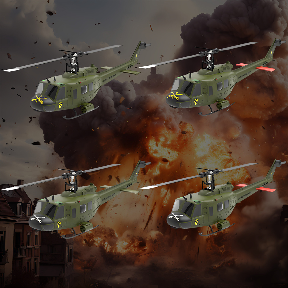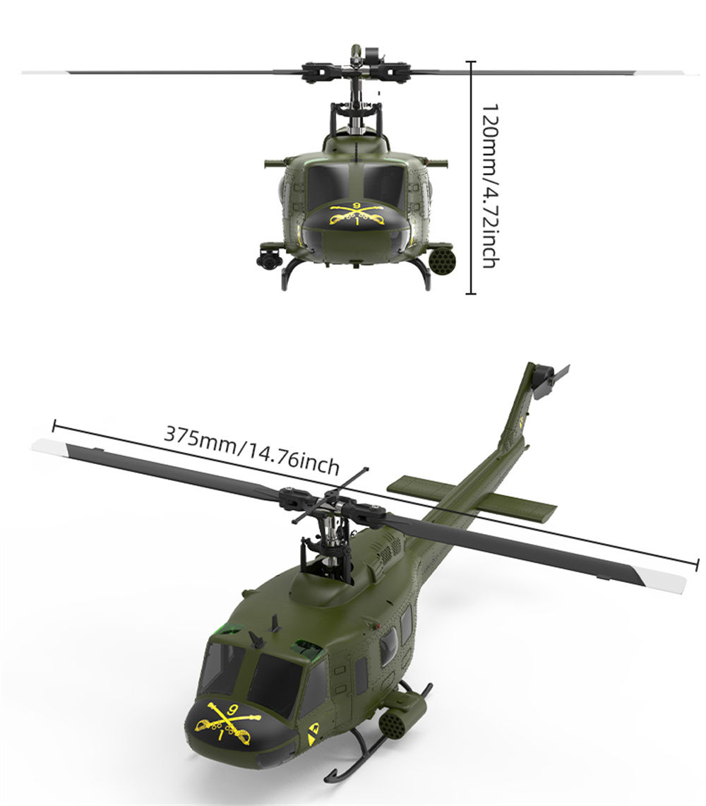 Eachine E190 skaalattu UH-1 Huey RC-helikopteri 1:34 2.4G 6CH optinen virtauspaikannus harjattomat moottorit
