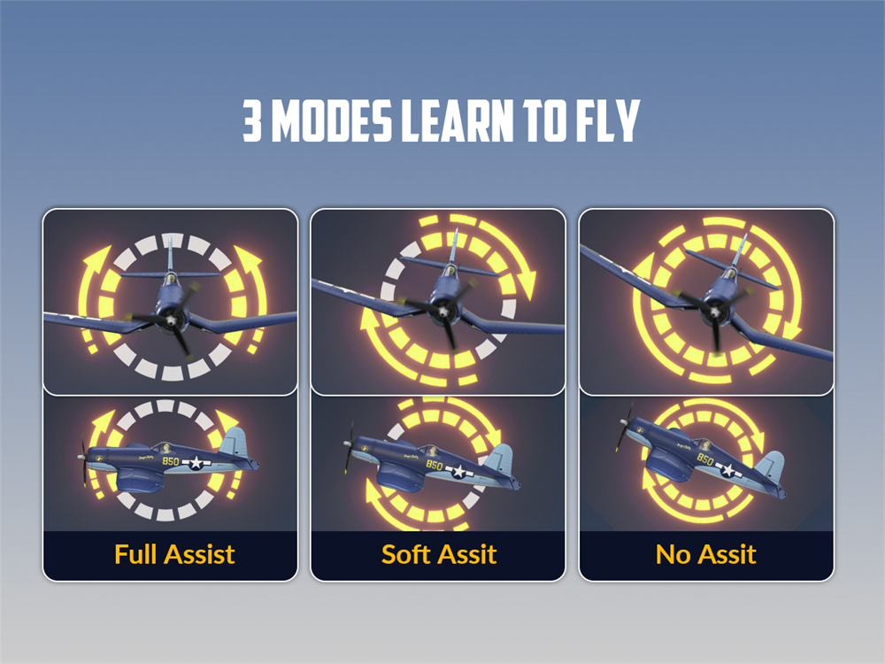 7. Yhden painikkeen nousu: asetusten jälkeen riittää, että työnnät kaasua, jolloin kone nousee automaattisesti ilmaan, taivaalla ohjaus voidaan vaihtaa käsiohjaukseen.
