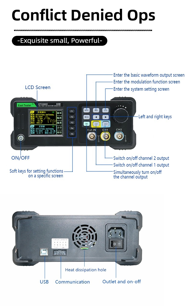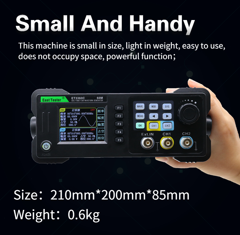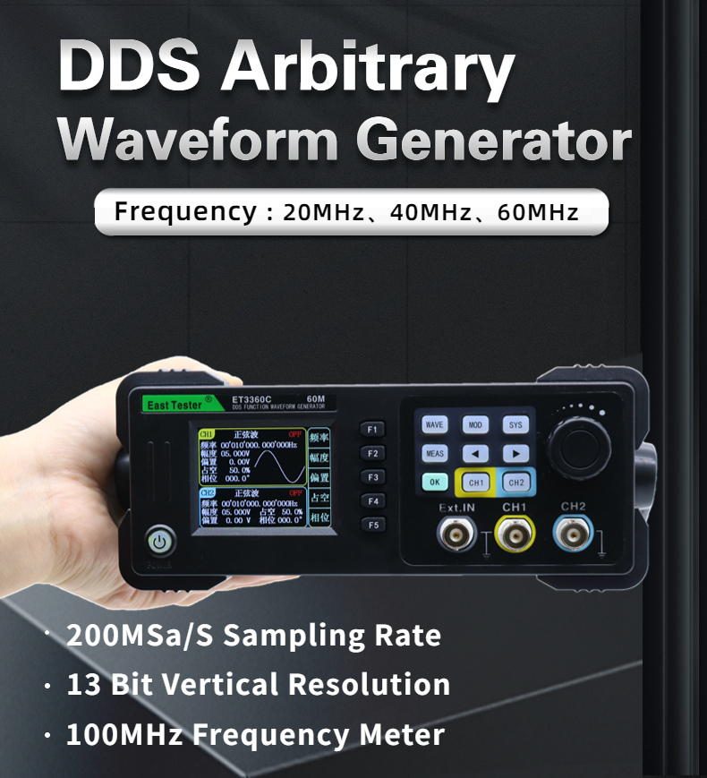 East Tester kaksikanavainen funktio- ja arbitraarinen aaltomuotogeneraattori 60MHz taajuusmittarilla