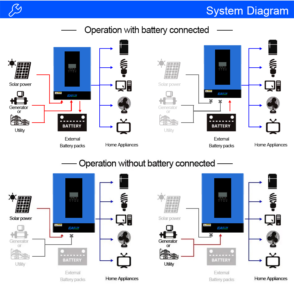 2. Akuton käyttö: Invertteriä voidaan käyttää ilman akkua, jolloin saat välittömän ja vakaan virransyötön. Tämä poistaa akkujen huollon ja vaihdon kustannuksia ja voi pidentää järjestelmän käyttöikää.
