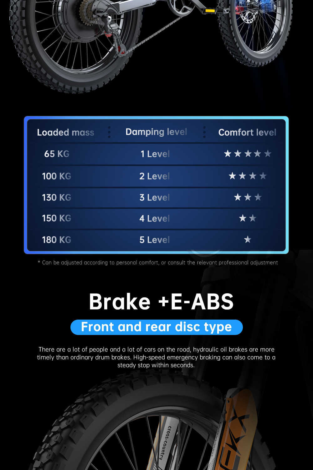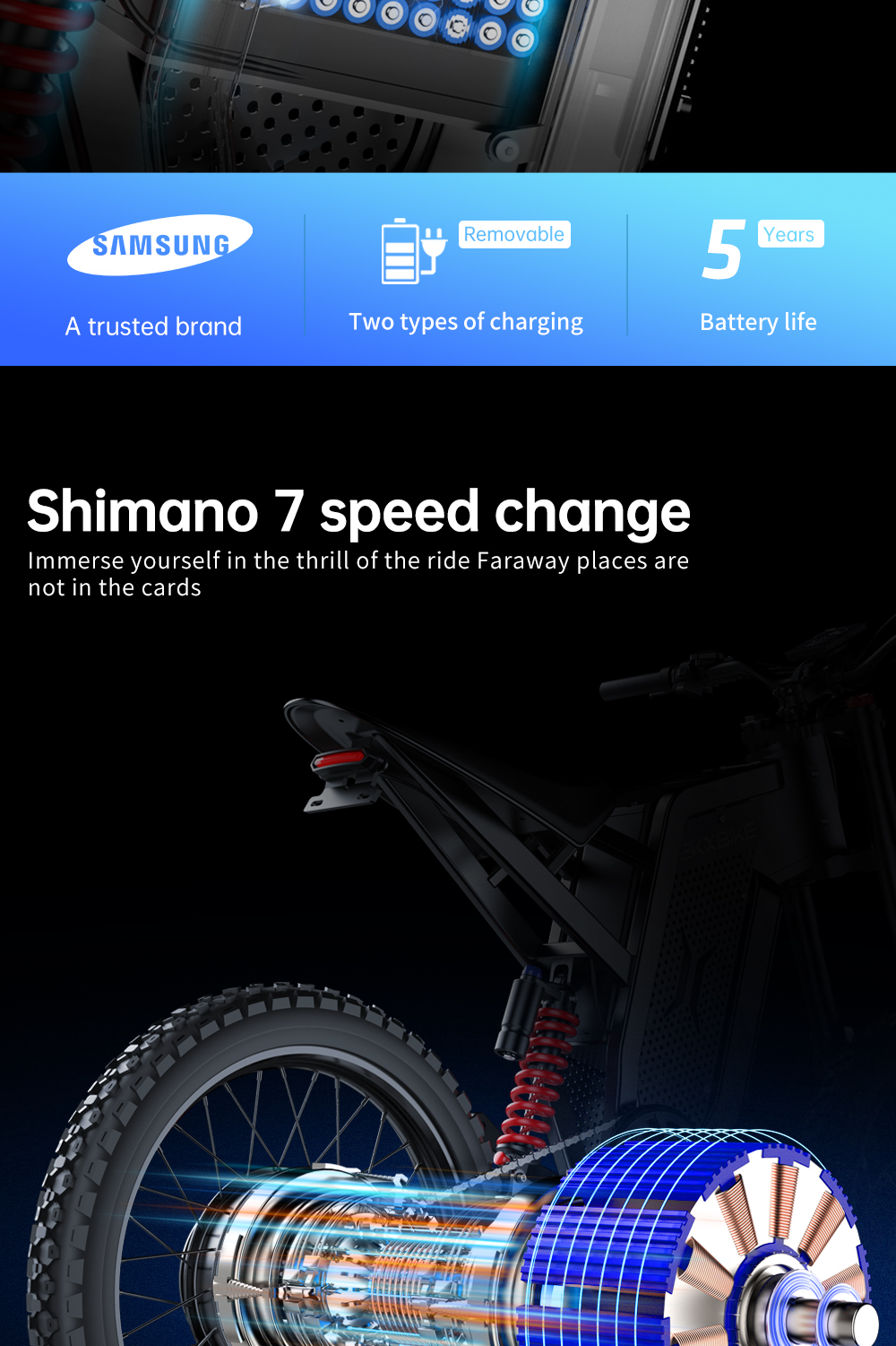 - 1000W moottori ja SHINAM0 7-vaihteinen vaihteisto maastoon ja kaupunkiin