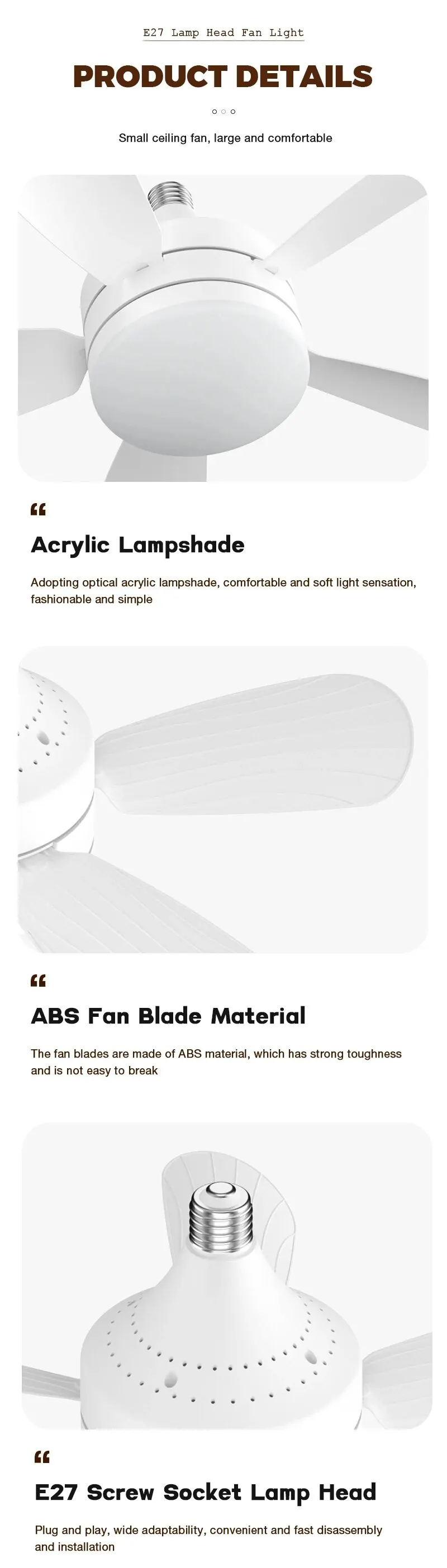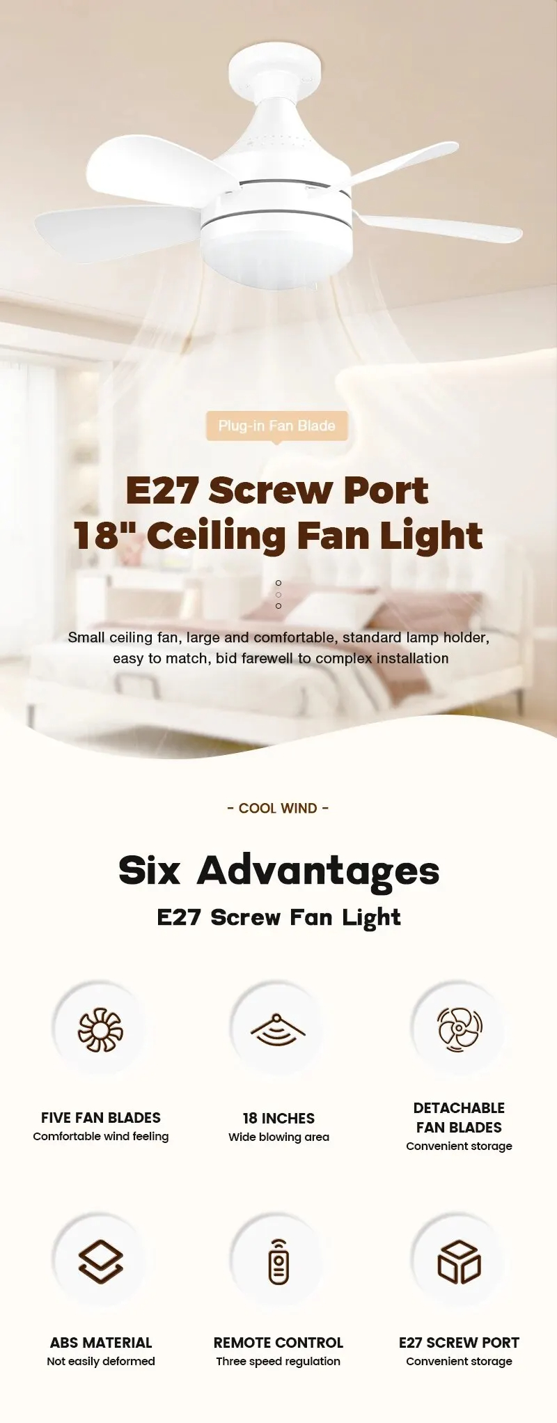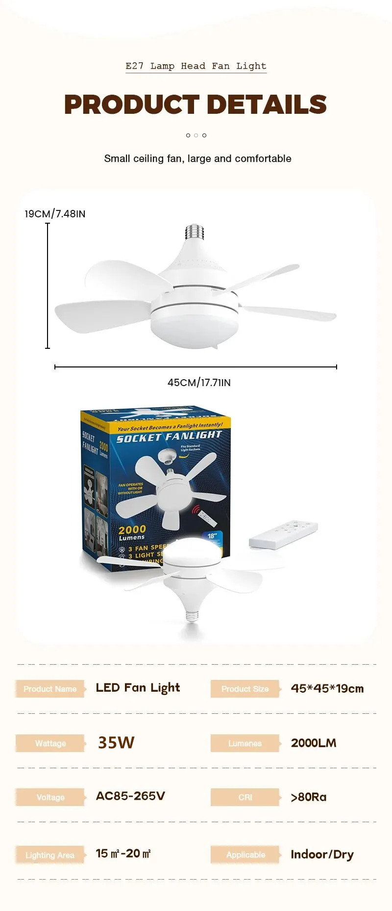 • 18-tuumainen, E27-kierrekanta – varma ja tukeva liitäntä hyvään suorituskykyyn.