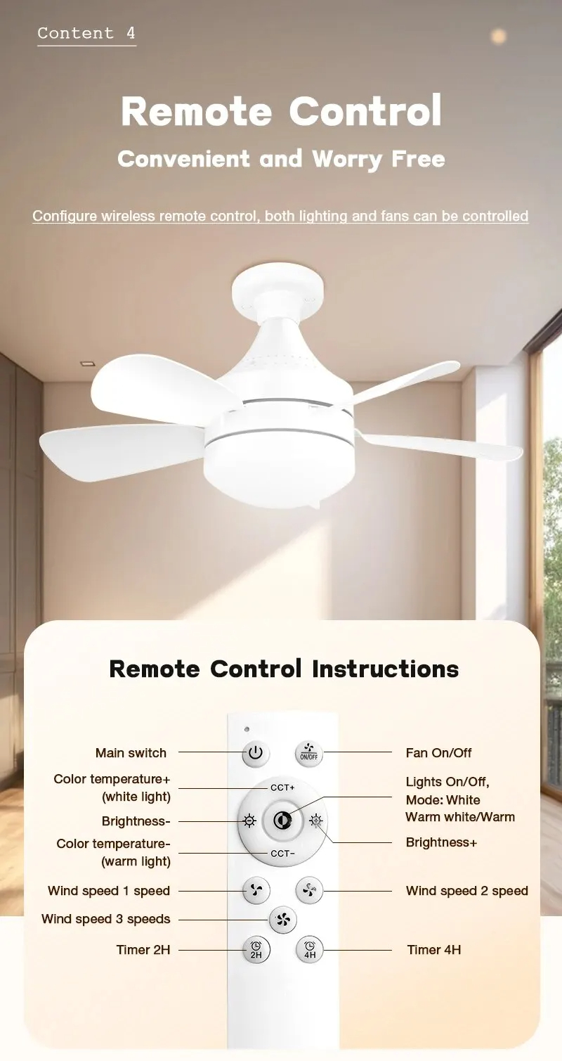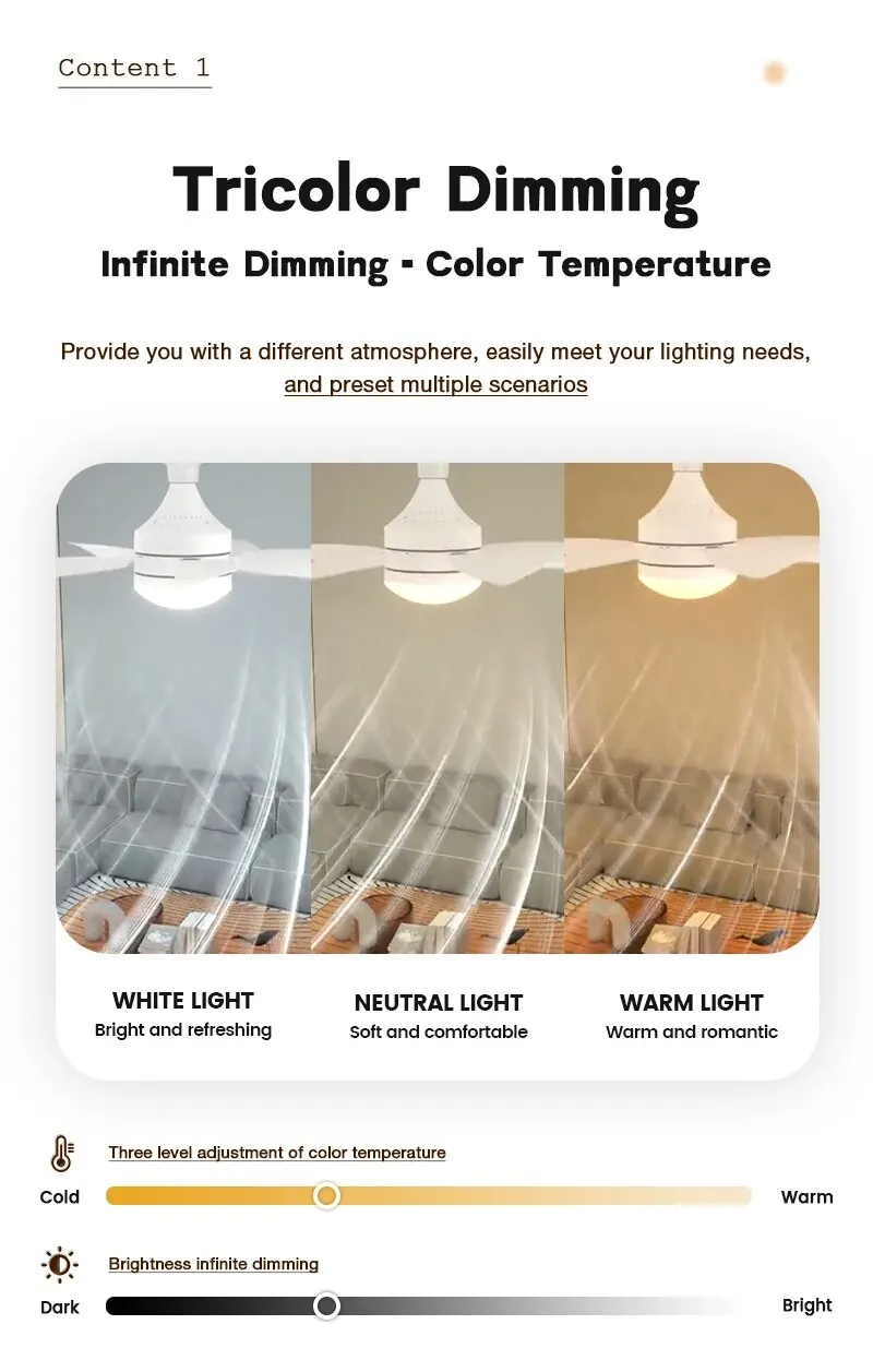 Elfeland 18 tuuman E27-ruuvikantainen kauko-ohjattava kolmivärinen himmennettävä hiljainen kattotuuletinvalaisin