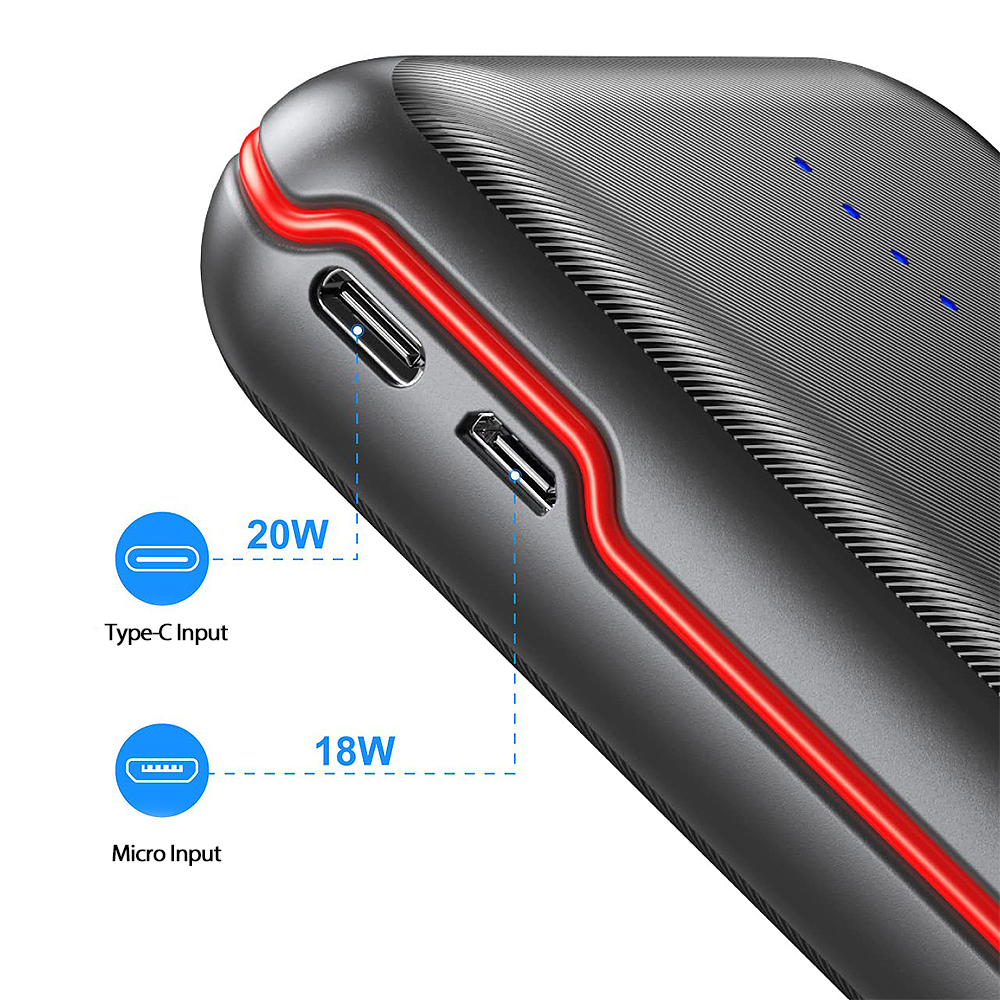 4. Kaksi tulovaihtoehtoa: Type-C ja Micro-USB sisääntulot varavirtalähteen lataamiseen.