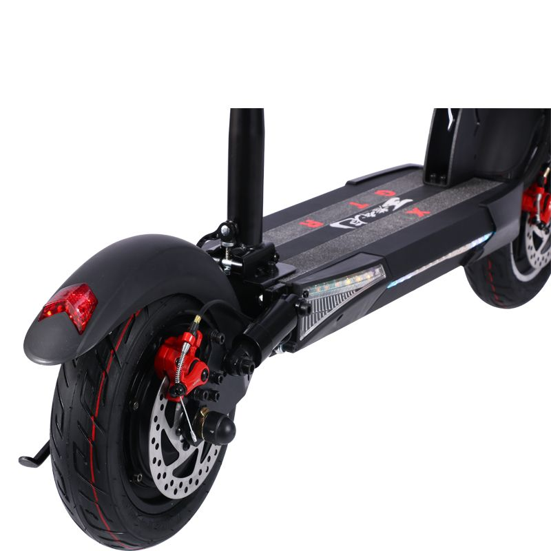 Sähköpotkulauta 800W, 48V15Ah akulla, noin 45–60 km toimintasäde, 25 km/h suositusnopeus, kaksinkertainen jousitus ja levyjarrut. Saksassa ei ABE.