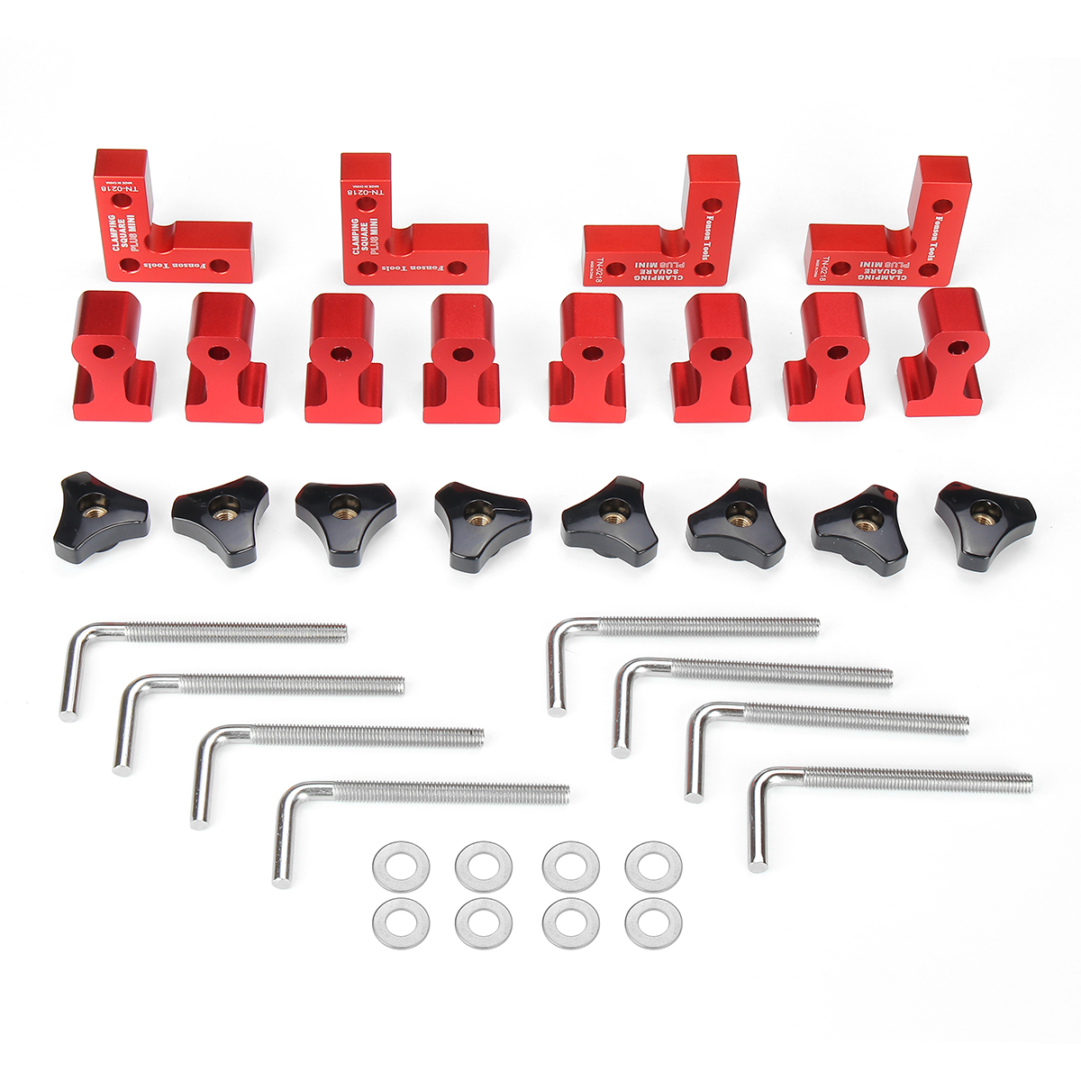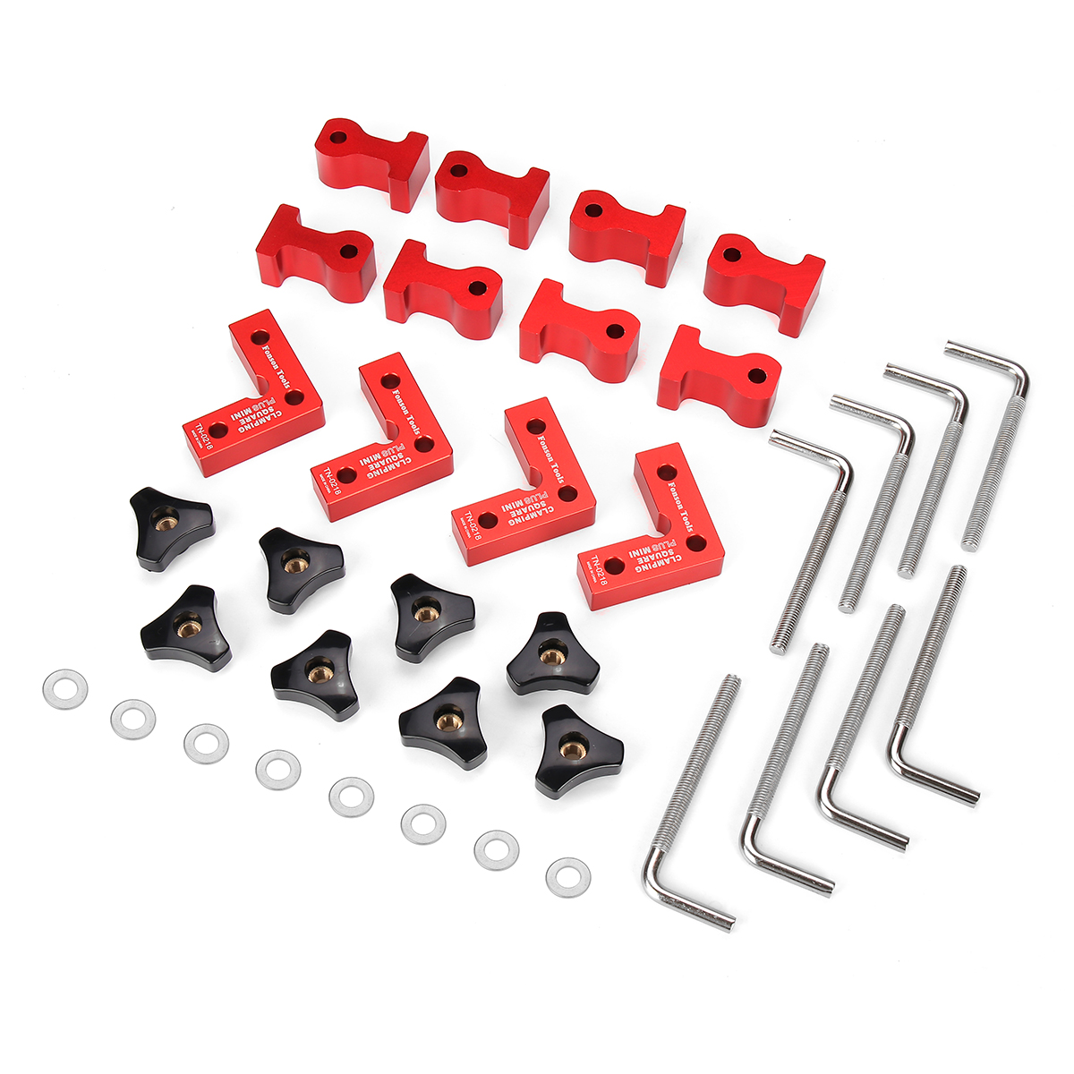 Tämä kulmapuristinsarja on valmistettu korkealaatuisesta alumiiniseoksesta ja ruostumattomasta teräksestä, mikä auttaa varmistamaan tarkan 90 asteen kulman. Anodisoitu punainen pinta tekee työkaluista ruostumattomia, tukevia ja korroosionkestäviä.