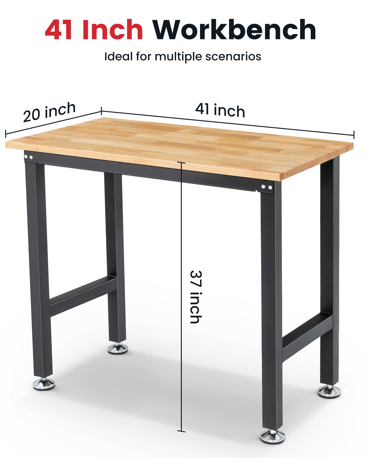 2. MONIKÄYTTÖINEN TYÖTASO – Puinen työtaso on sileä ja tilava (41' x 20'), joten sitä voi käyttää myös tietokonepöytänä, työpöytänä, ruokapöytänä tai askartelupisteenä. Se sopii hyvin autotalliin, puutarhaan, kotiin ja toimistoon, ja luonnollinen sävy mukautuu monenlaisiin sisustustyyleihin. Sileä kumipuutaso on helppo puhdistaa ja pitää kunnossa.
