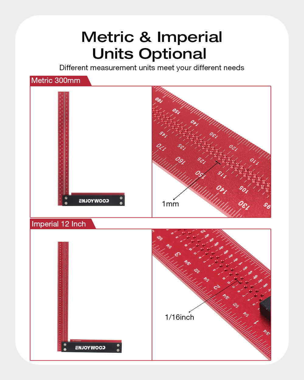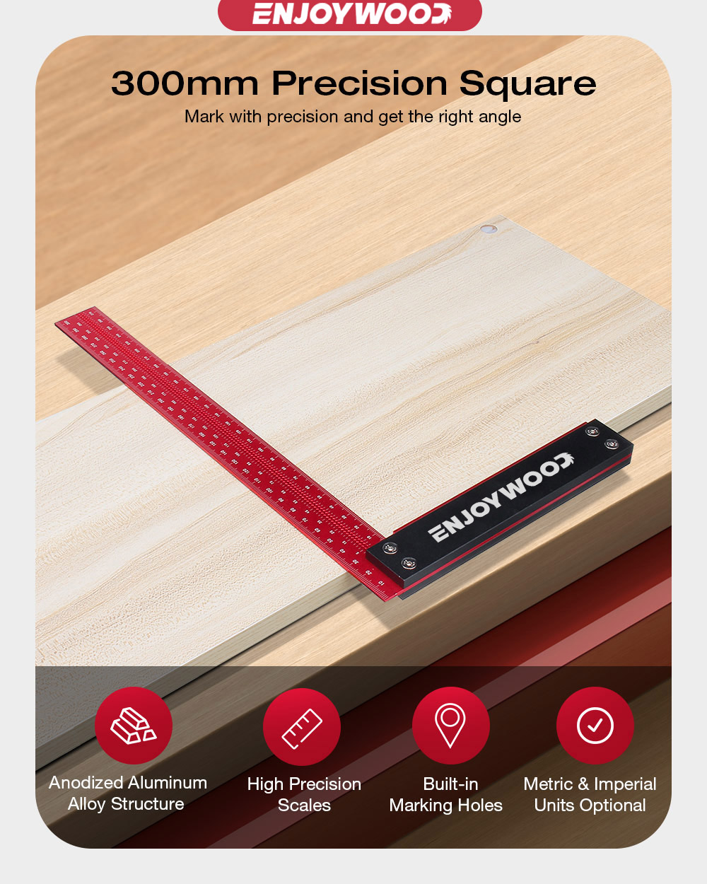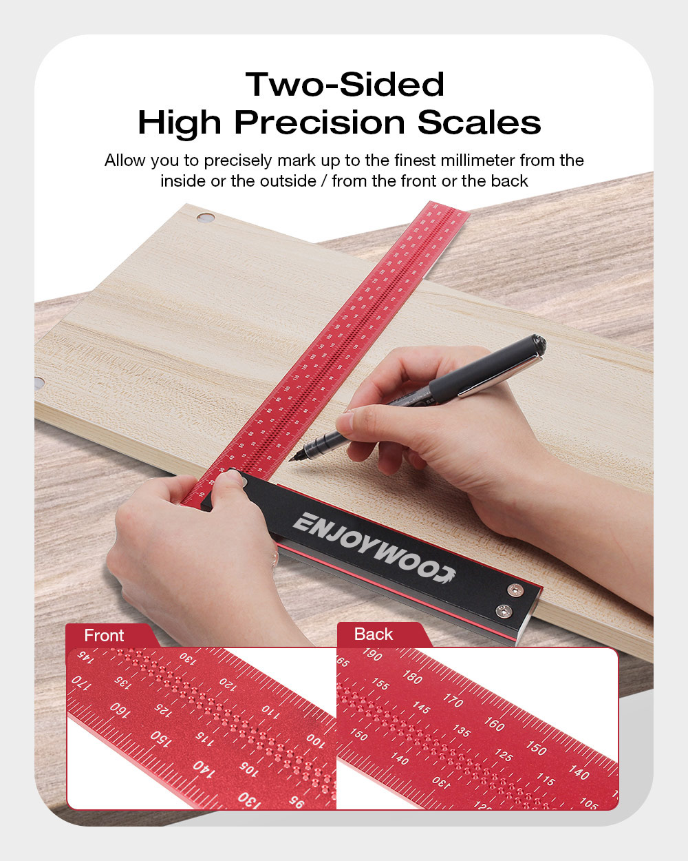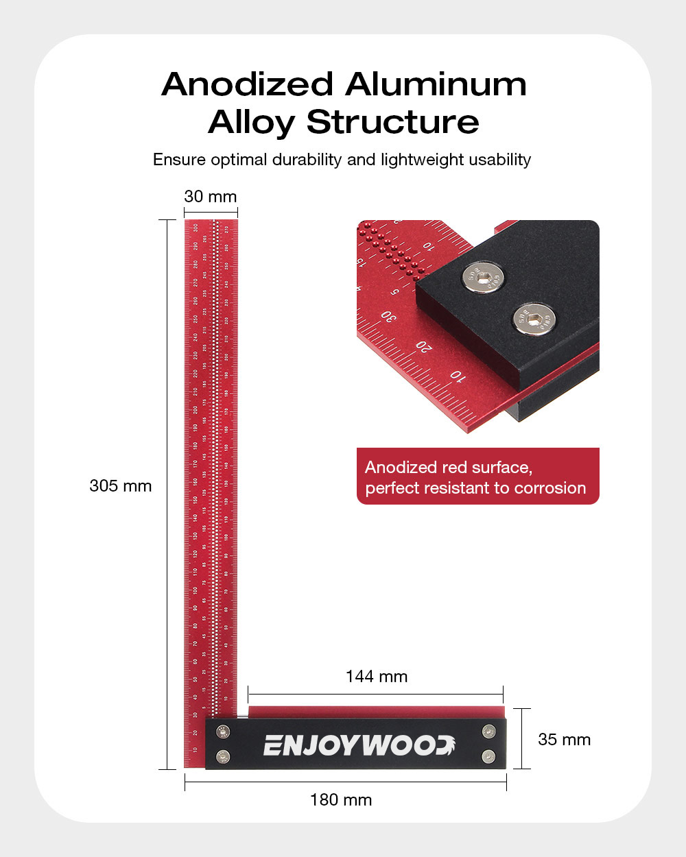 ENJOYWOOD L-muotoinen tarkkuusviivain 300 mm:n anodisoitu alumiini puuntyöstöön