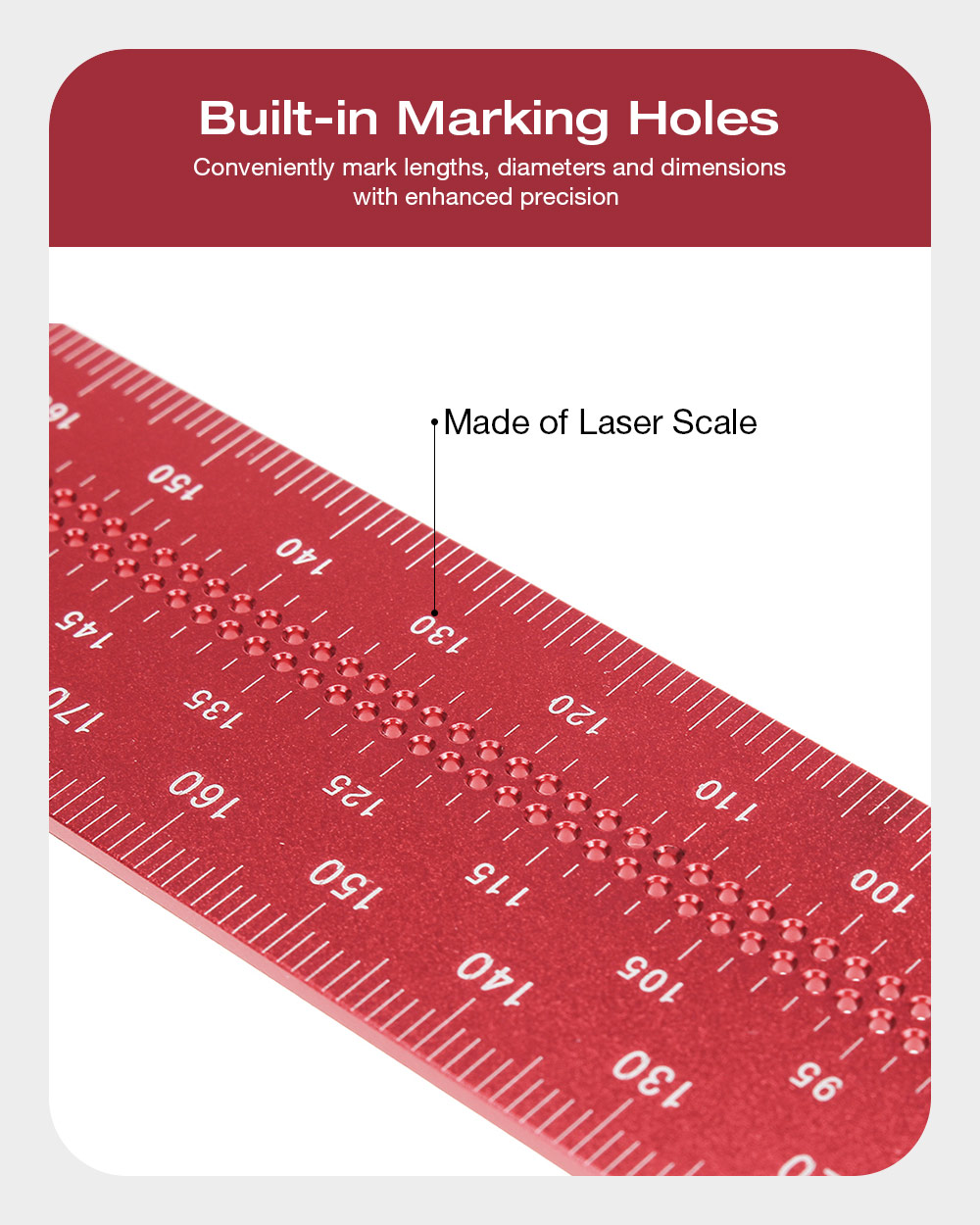 Metrinen ja tuumamitallinen versio: mahdollistaa suorien ja rinnakkaisten viivojen piirtämisen nopeasti ja tarkasti valitun mittajärjestelmän mukaan.