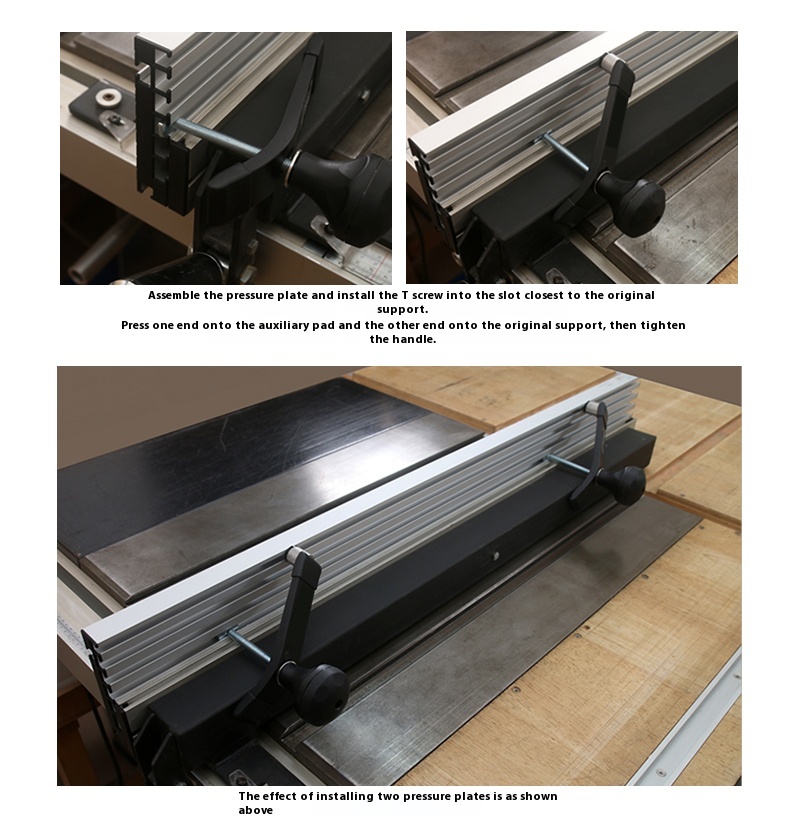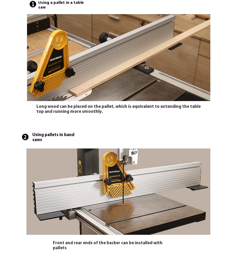 Monipuolinen käyttö: Sopii käytettäväksi pöytäsahojen, vannesahojen, pyörösahojen ja jyrsintäpöytien kanssa, jolloin sama lisäaita tukee useita eri työkoneita.