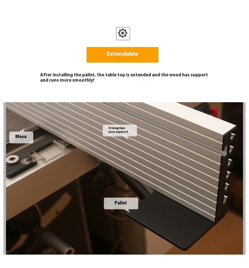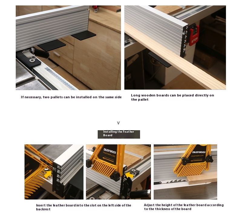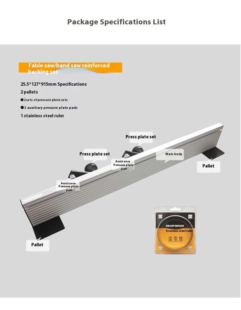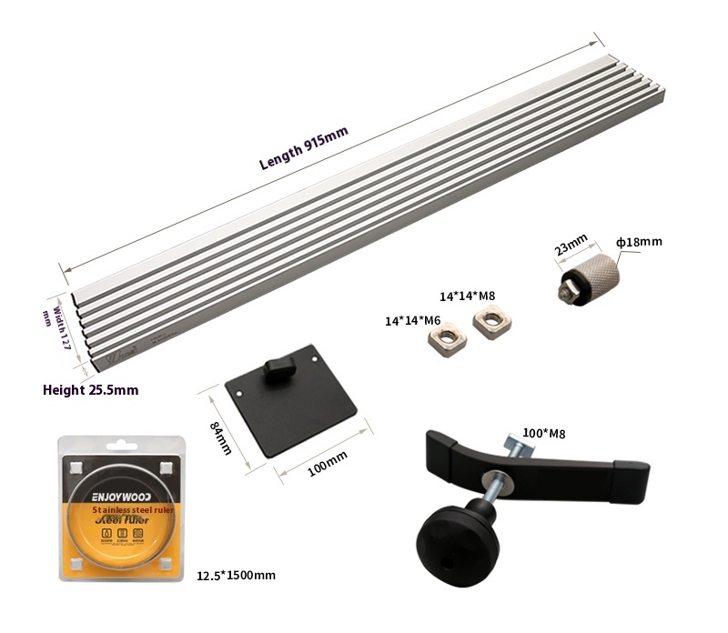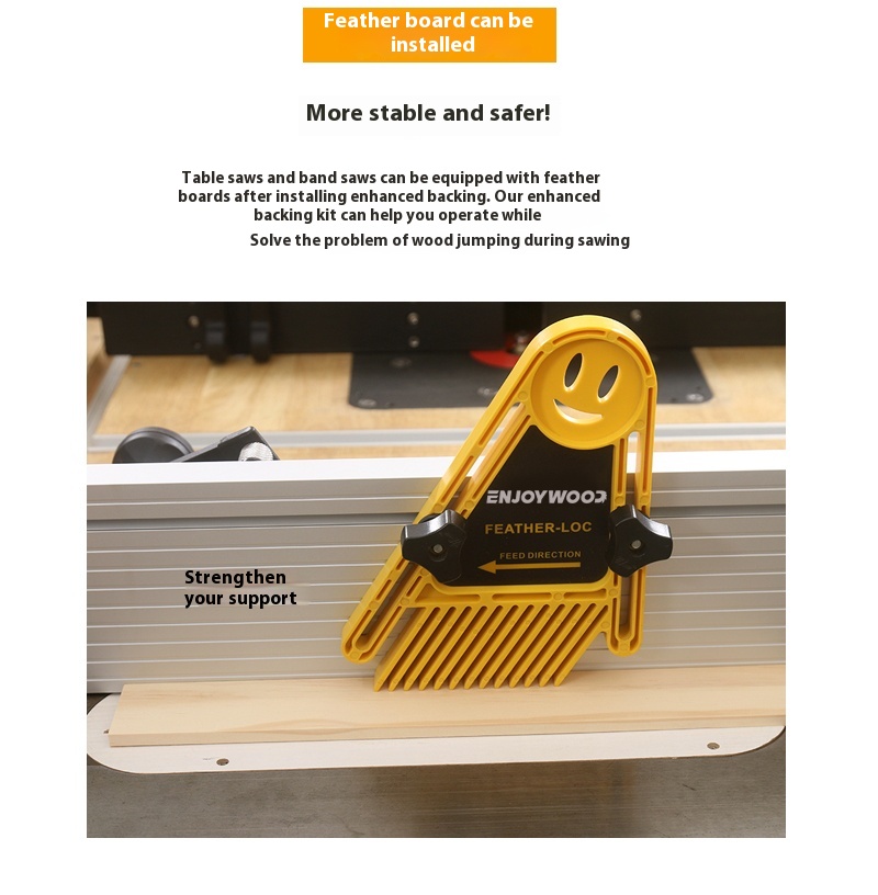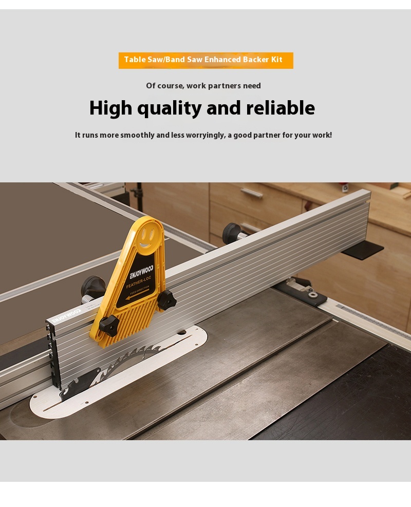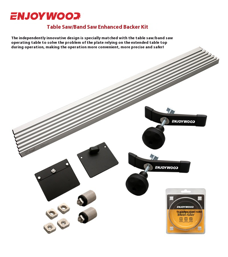 ENJOYWOOD-alumiininen lisäaita parantaa pöytäsahan, vannesahan, pyörösahan ja jyrsintäpöydän ohjaustarkkuutta ja työskentelyn vakautta. Vahvistettu taustarakenne ja ruostumattomasta teräksestä valmistettu mitta-asteikko auttavat tekemään toistettavia, tarkkoja leikkauksia turvallisemmin ja johdonmukaisemmin.