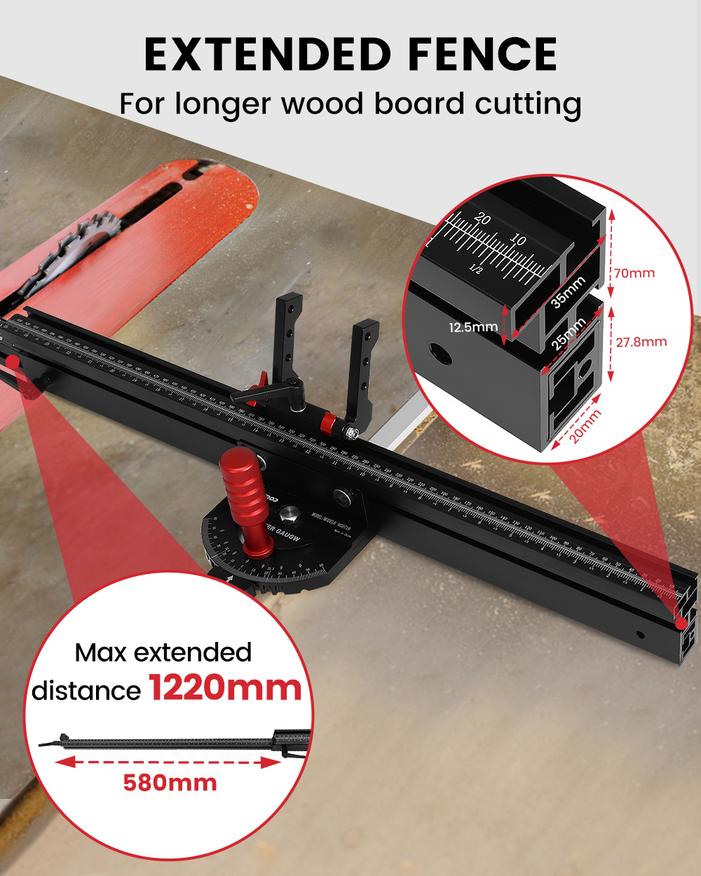 ENJOYWOOD M1 Pro kulmamittari pidennetyllä aidalla pöytäsahalle tarkka alumiinirakenteinen