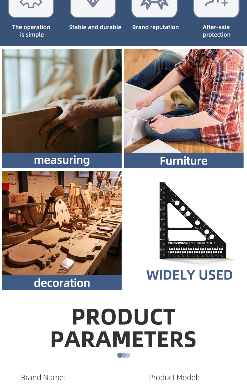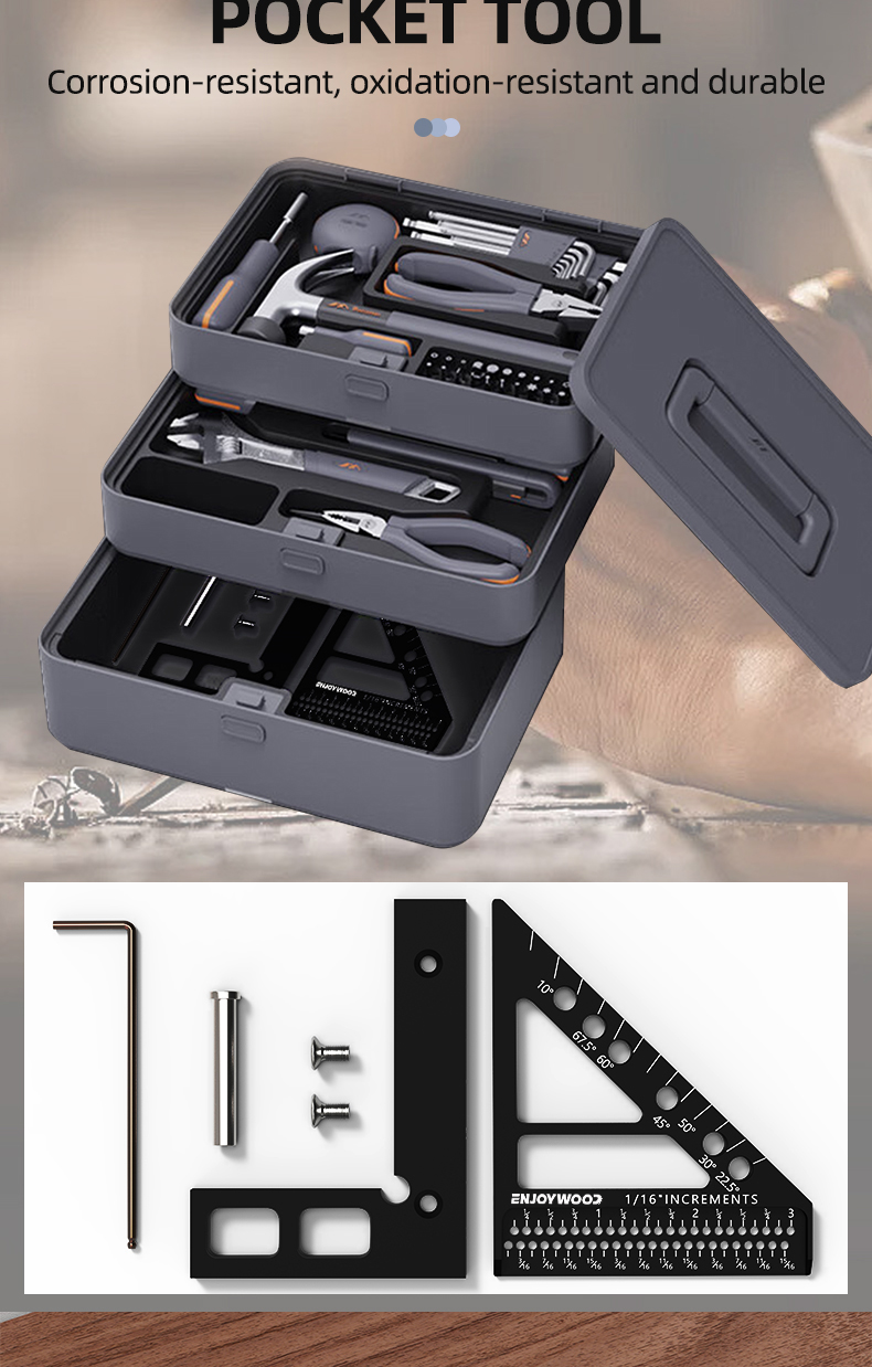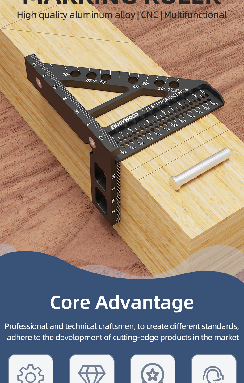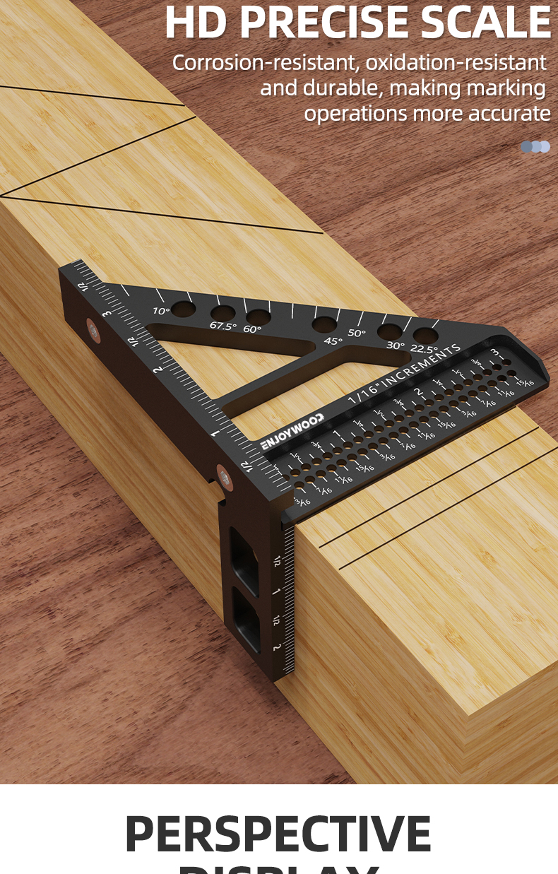 HD-tarkkuusasteikko: 3-in-1 Angle Ruler -kulmaviivain on varustettu selkeällä ja tarkalla asteikolla, joka tekee kaikista merkintätoimenpiteistäsi täsmällisempiä. Työkalu kestää hyvin korroosiota ja hapettumista, joten se soveltuu pitkäaikaiseen käyttöön.
