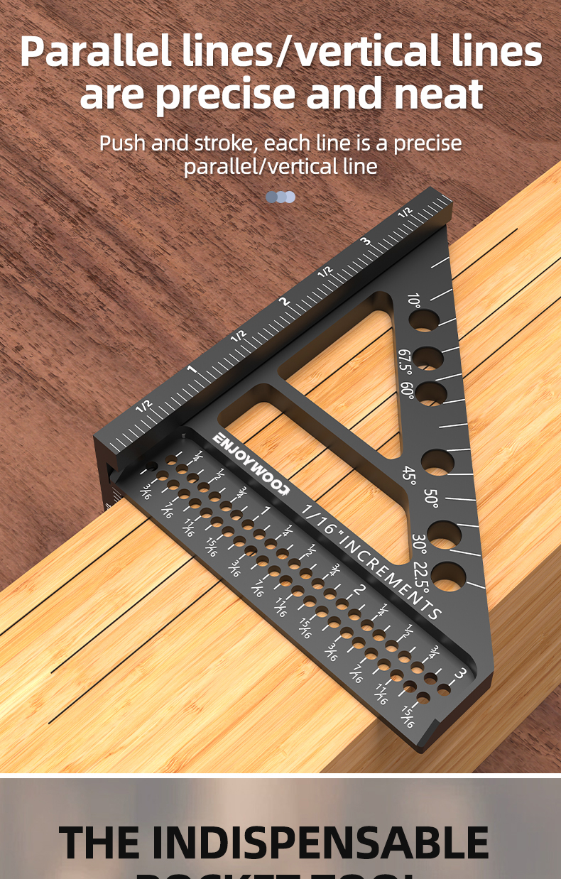Tarkka viivanpiirto: 3-in-1 Angle Ruler helpottaa sekä yhdensuuntaisten että pystysuorien viivojen piirtämistä. Työnnä ja vedä viivainta, niin jokaisesta viivasta tulee tarkka yhdensuuntainen tai pystysuora linja mittauksia varten.