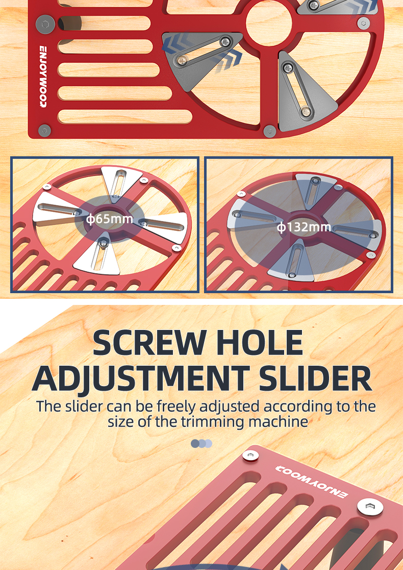 ENJOYWOOD säädettävä leikkausjyrsinpohja liukusäätimellä alumiini 65–132 mm yhteensopiva